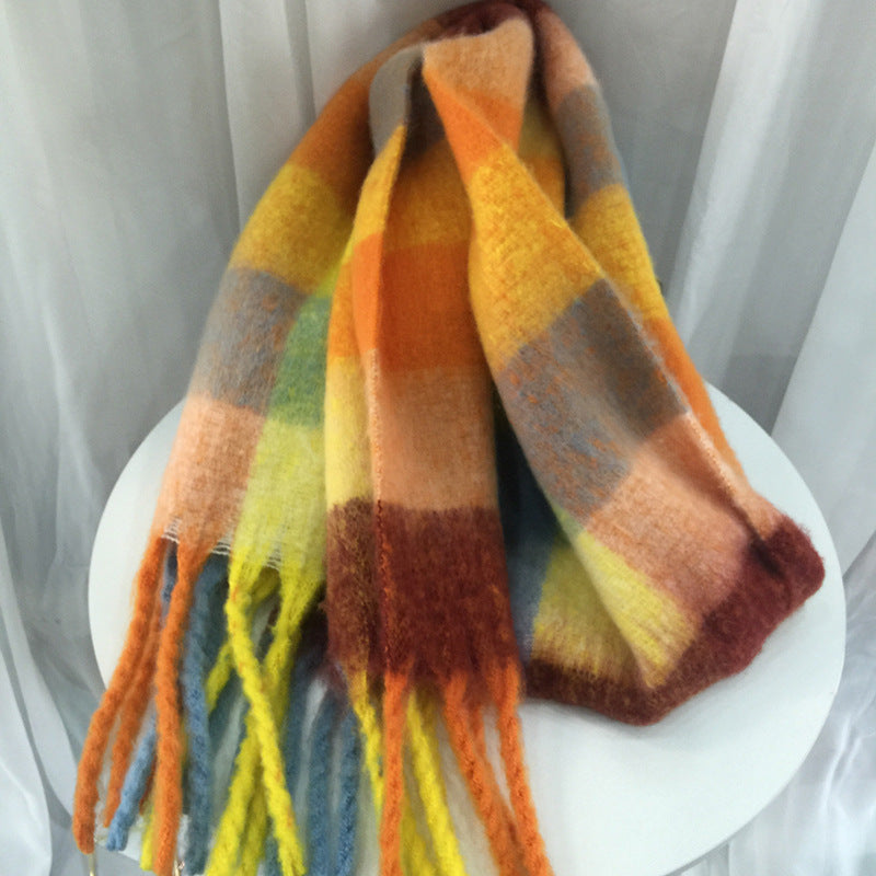 Expertly crafted for both fashion and function, the Women's Autumn Colorful Striped Warm Cashmere Plaid Scarf is the ideal accessory for chilly days. Featuring a vibrant color grid pattern and soft imitation cashmere texture, this scarf brings elegance and comfort to every outfit. Whether you're layering up for winter or adding flair to your spring coat, this is your go-to piece for seasonal style.
