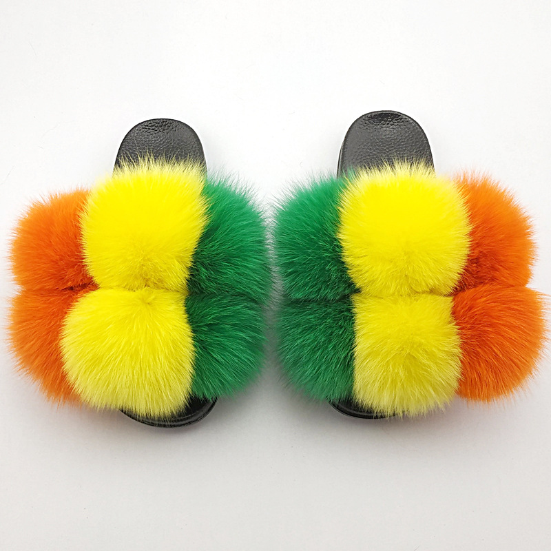 Fox Fur Ball Slippers For Outer Wear