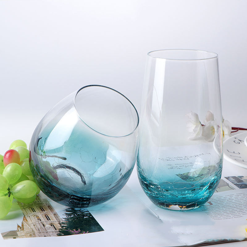 Color: short ice crack glass blue, ice crack goblet, high ice crack glass, ice crack cocktail glass, ice crack champagne glass