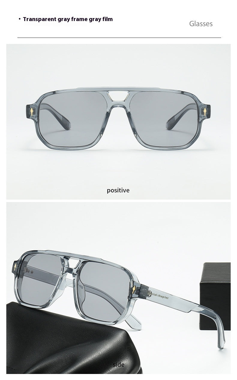 Square Fashion Double Beam Sunglasses Men's Retro Casual