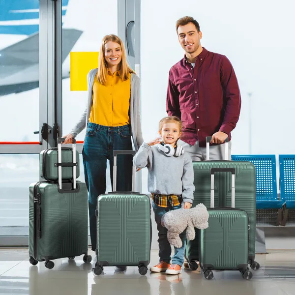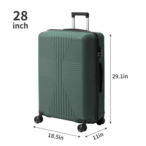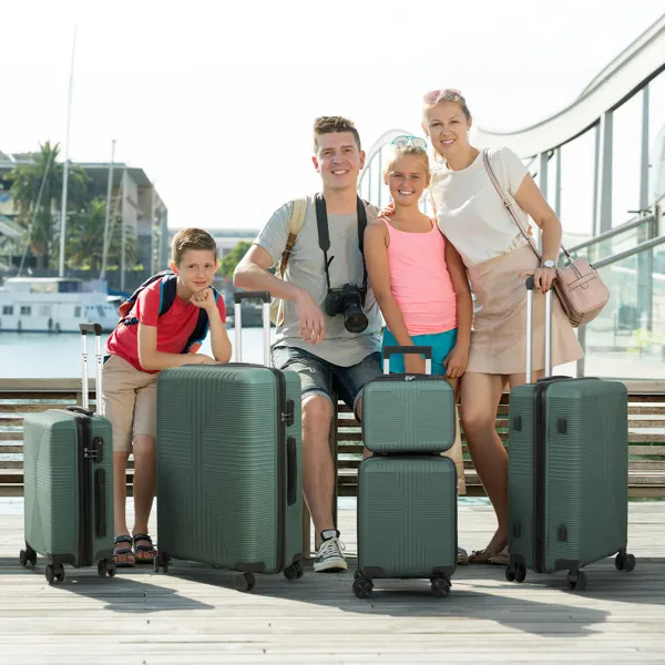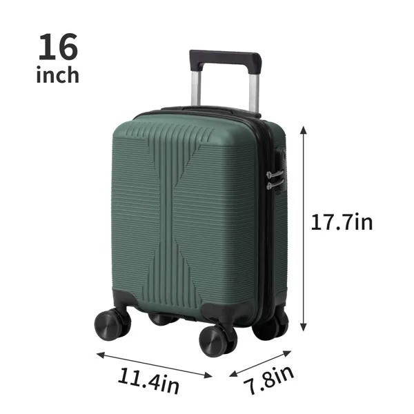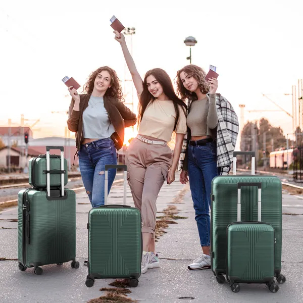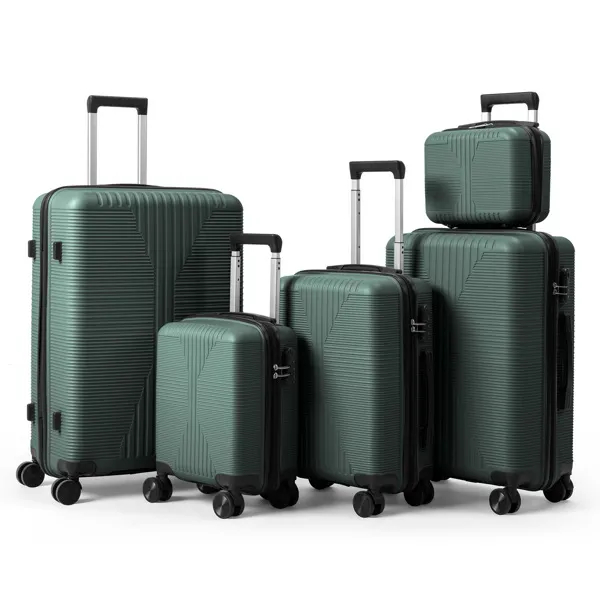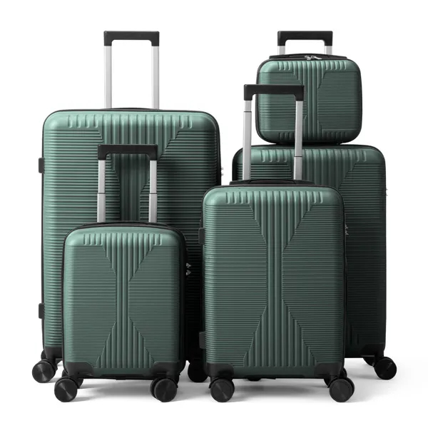 Durable polypropylene trolley case set featuring five versatile sizes—12", 16", 20", 24", and 28"—to cover every travel need from carry-on to checked luggage. Each case includes a non-TSA customs lock for secure closure and peace of mind during transit. The lightweight PP construction resists impact and weathering, while smooth-rolling wheels and ergonomic handles ensure effortless maneuverability through airports and terminals. Rich dark green finish adds understated sophistication to your travel gear. Ideal for frequent travelers seeking a complete luggage solution that balances protection, portability, and style across multiple journey lengths.