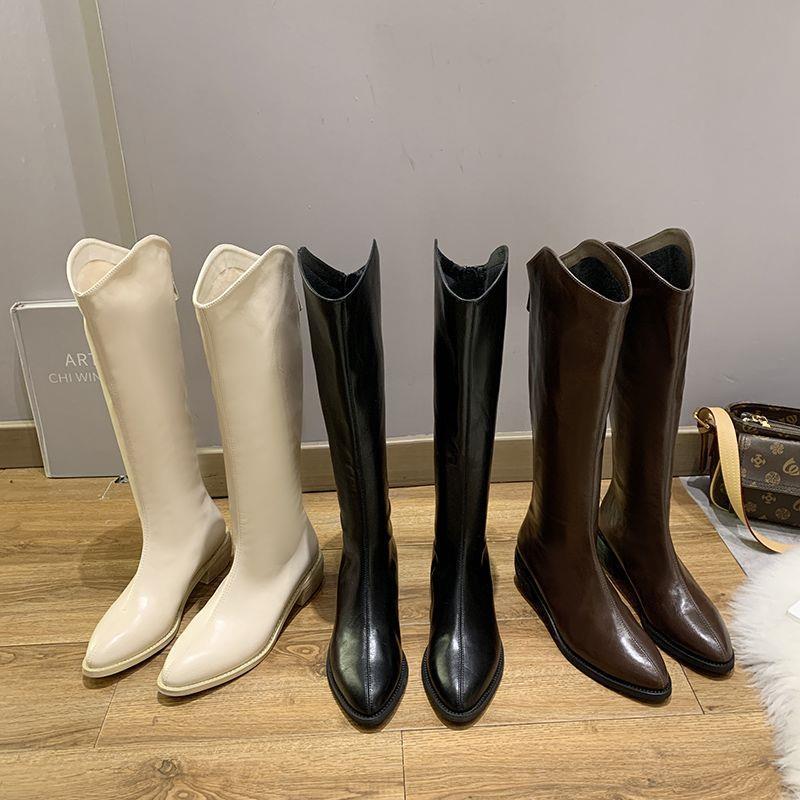 Pointed Toe V-shaped Mouth Velvet Padded Slimming High Rear Zipper Riding Boots