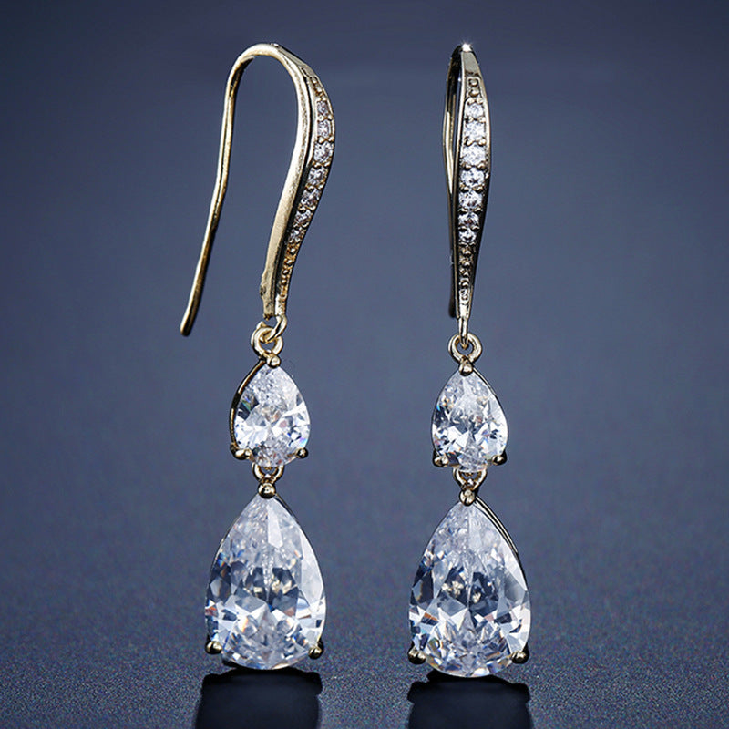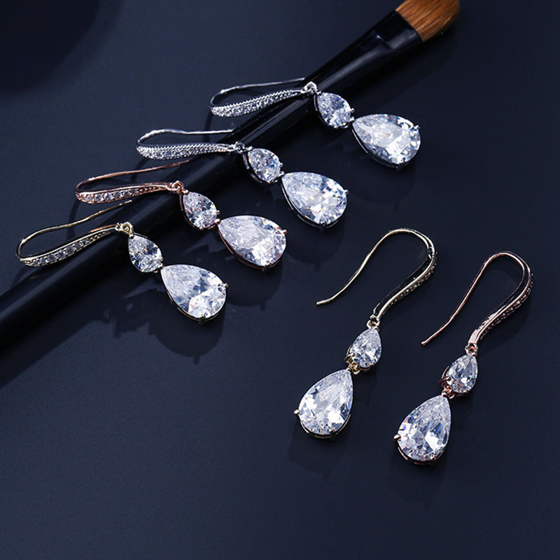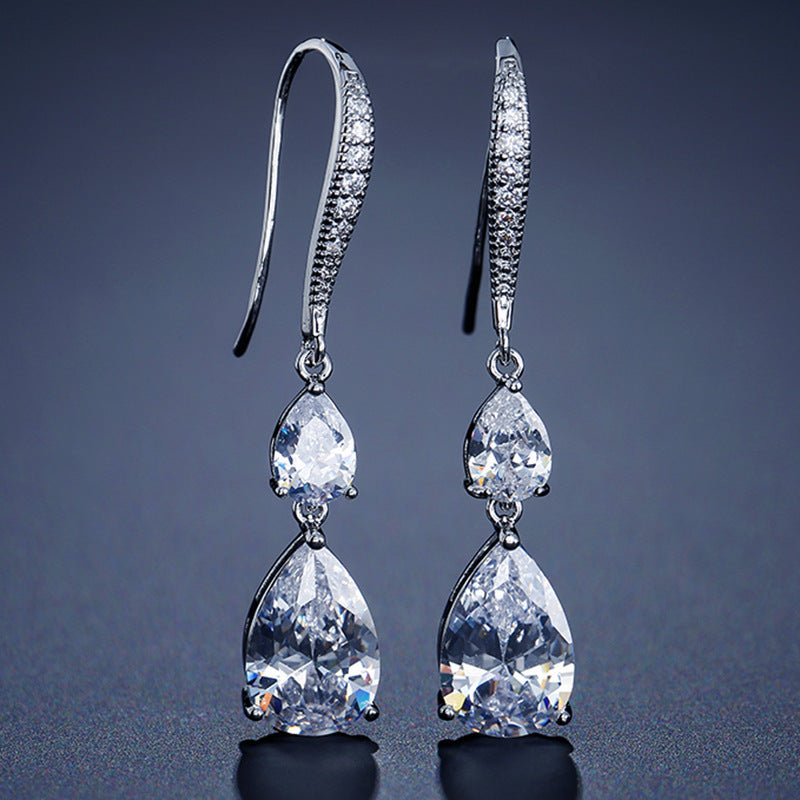 RAKOL Simple Long Exquisite Water Drop Zircon Female Simple Banquet All-match Earrings