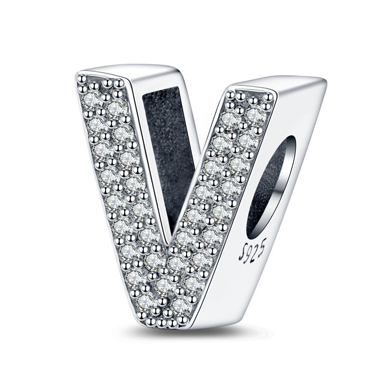Twenty-six Letter Beads White Copper Silver Plated Beaded Braceletnecklace Ornament
