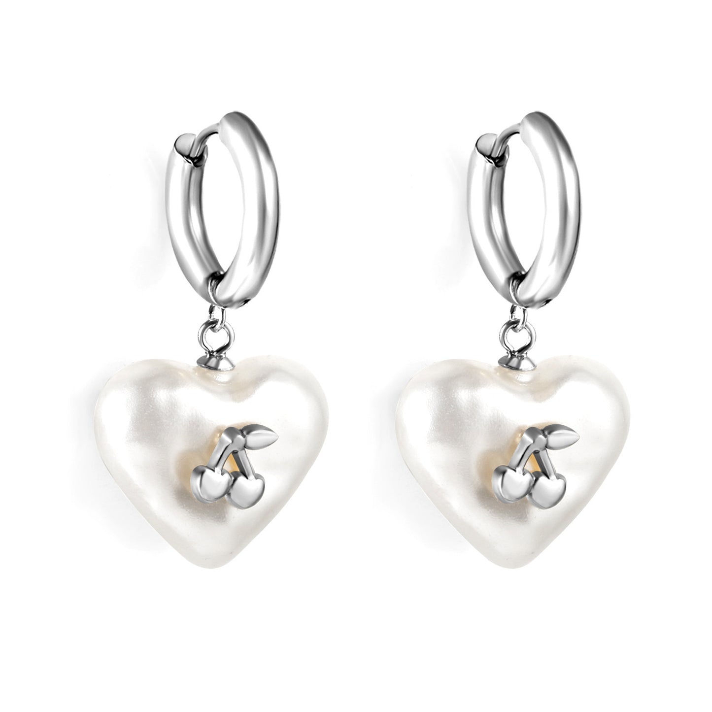 Versatile Personality Stainless Steel Circle Cherry Heart Pearl Earrings