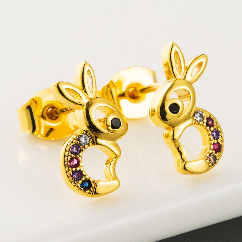 Copper Micro-inlaid Colorful Zircon Earrings Cute Jade Rabbit Personality All-match Earrings Earrings