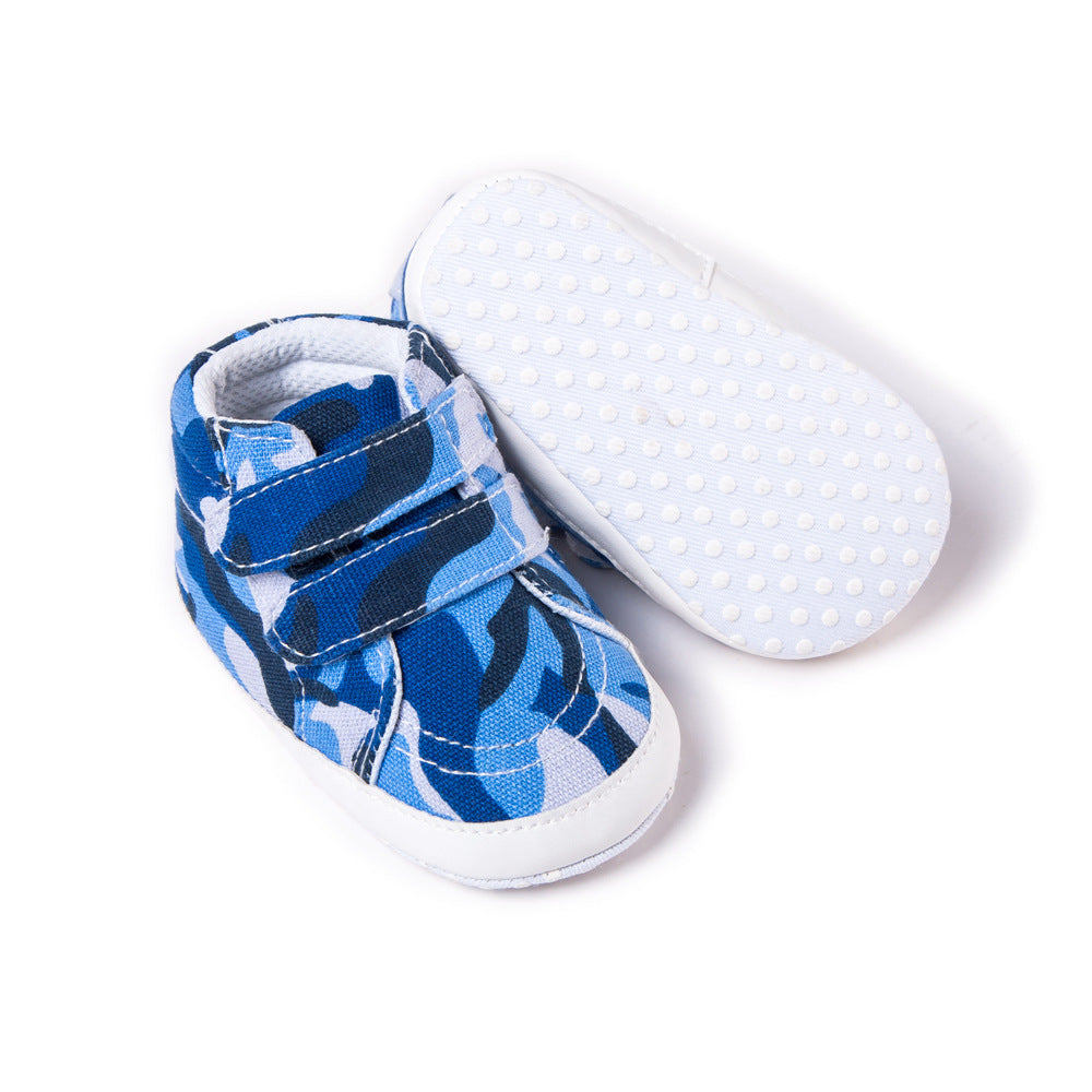 These double strap baby shoes feature a durable camouflage canvas design, combining style with practicality. The secure double straps ensure a comfortable fit, making them ideal for active little ones. Perfect for everyday wear, they offer both protection and a trendy look for your baby’s first steps.