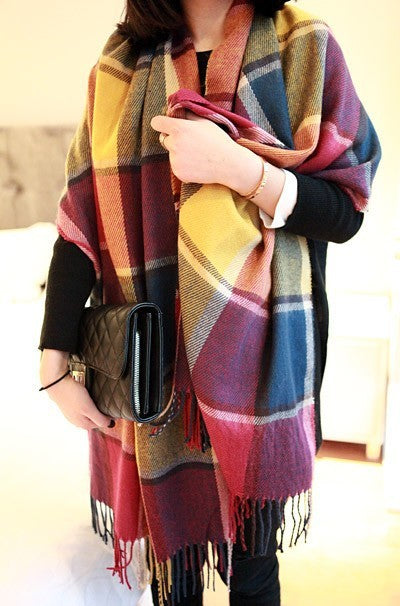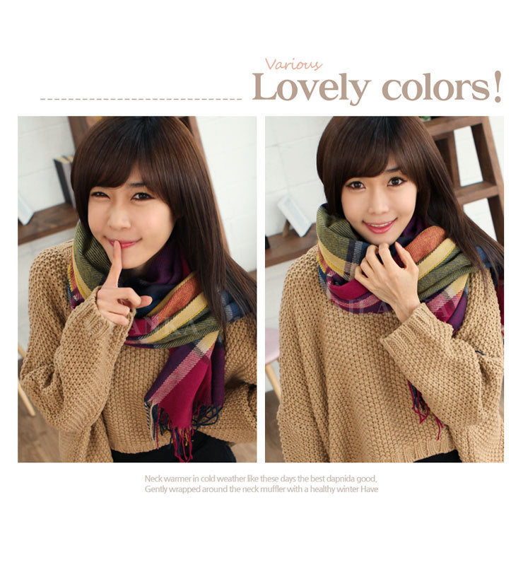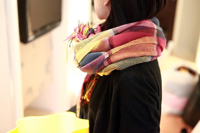 Colorful Extra Long Thick Tassel Plaid Scarf