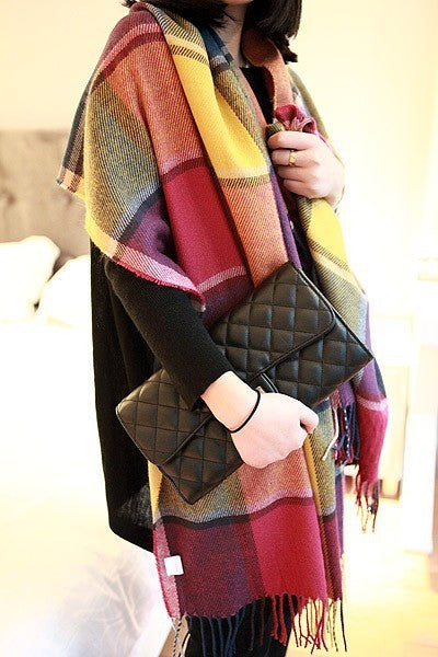 Wrap Yourself in Luxury with Our Colorful Extra Long Thick Tassel Plaid Scarf