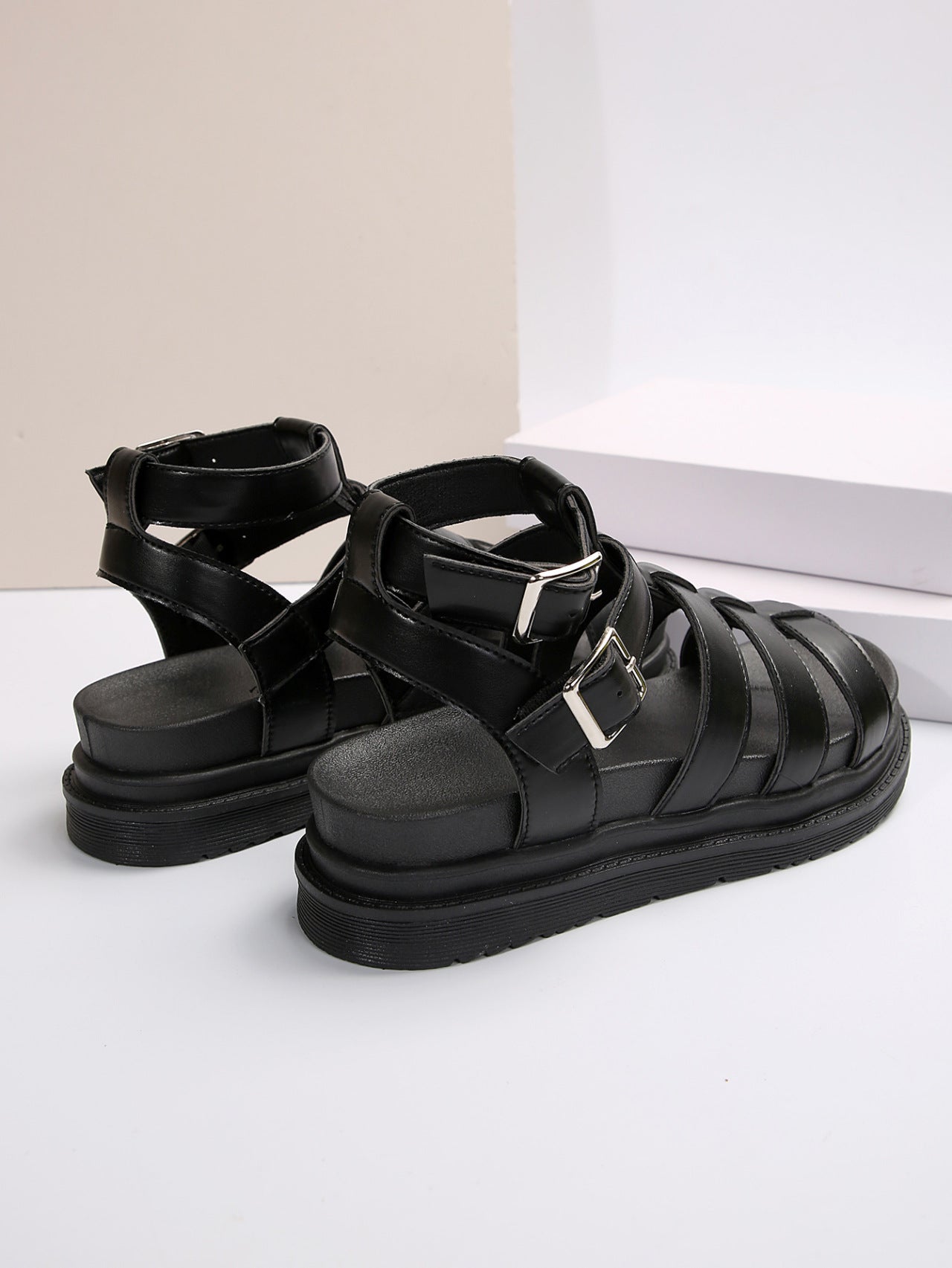 Hollow-out Belt Buckle Platform Pig Cage Sandals Women's Foreign Trade Roman Shoes