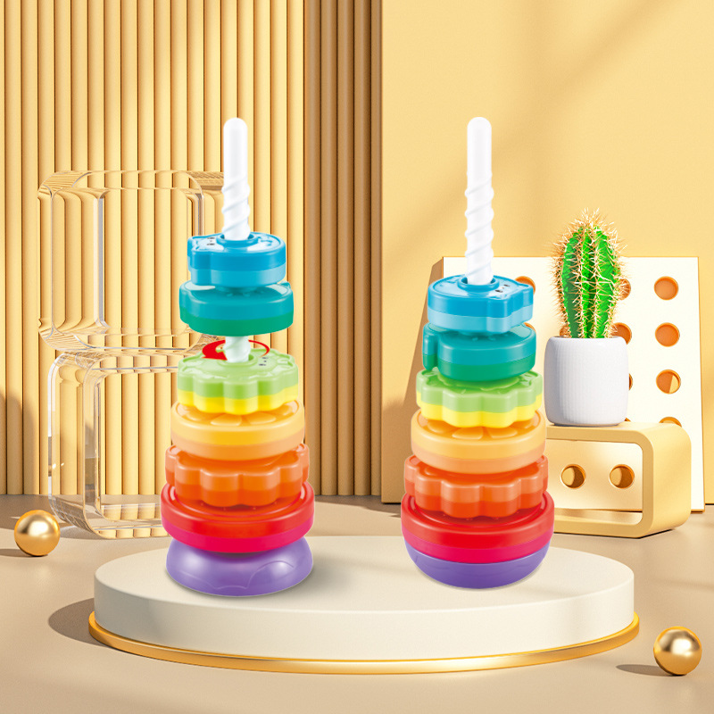 Yi Infant Cognitive Rainbow Rotating Tower Toy Geometrische Aderendhülsen Klappbarer freudiger rotierender Turm