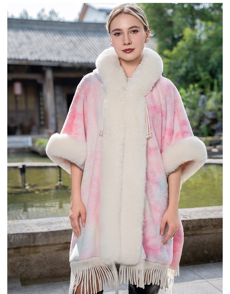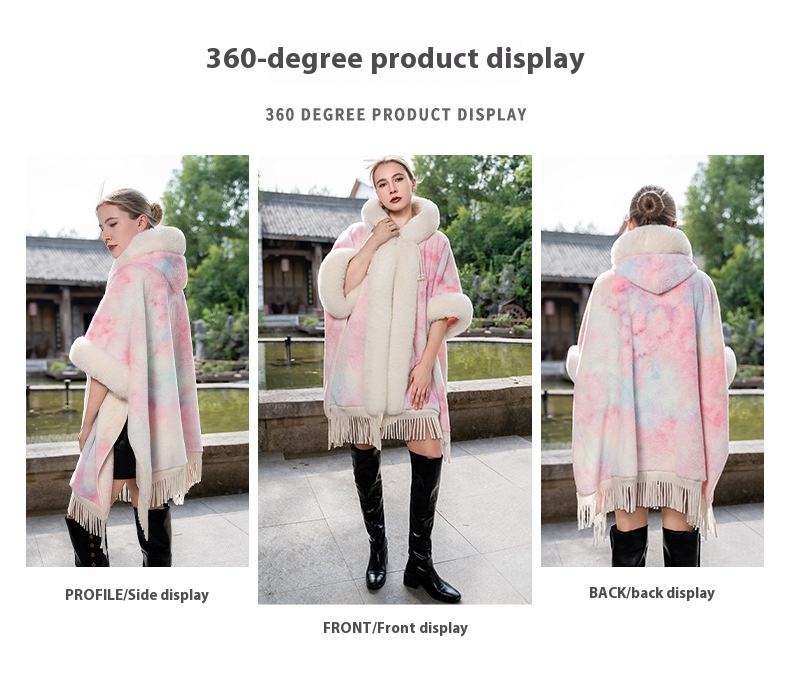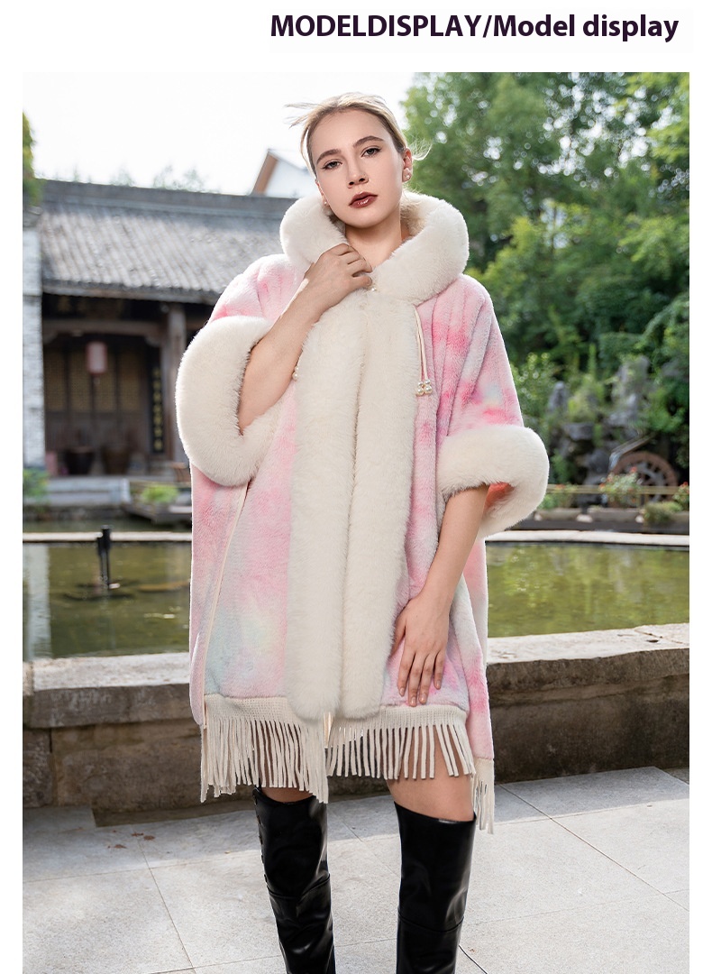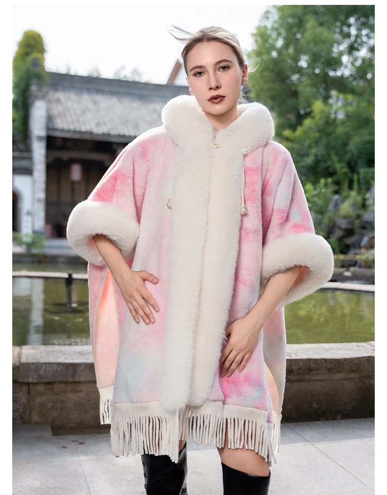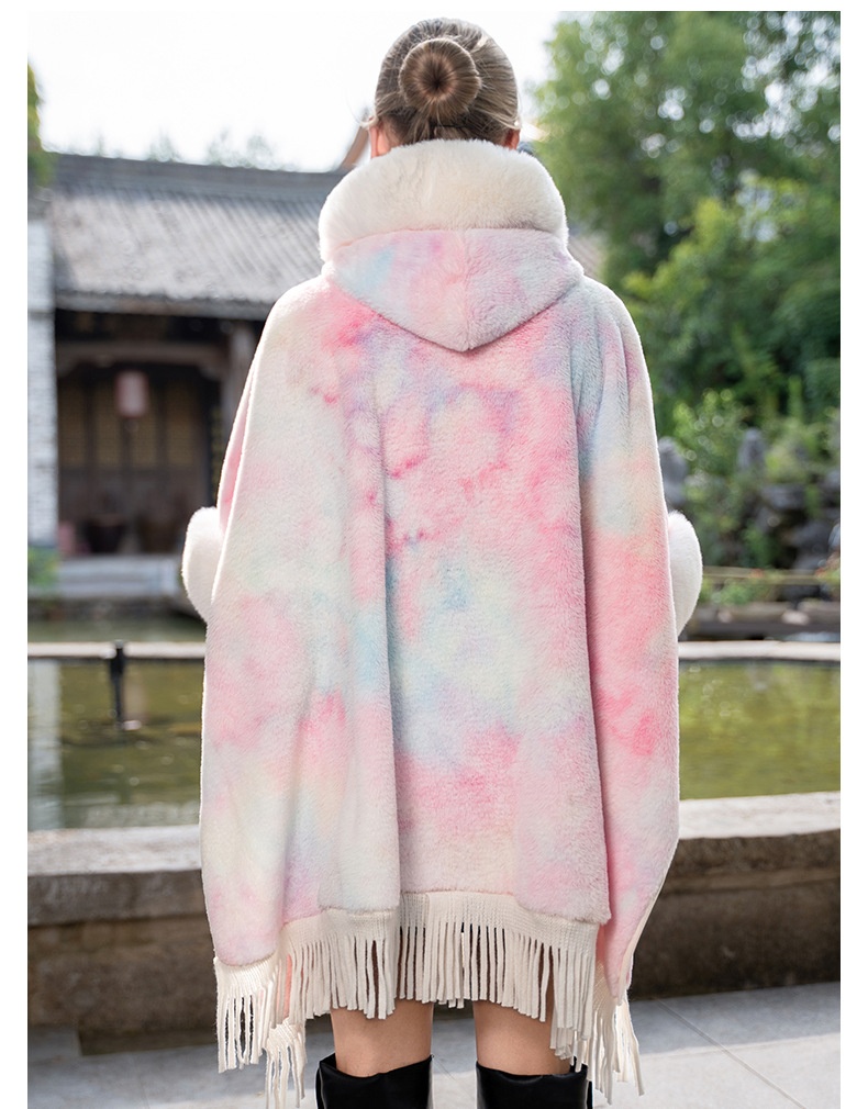 Tie-dyed Tassel Cape And Shawl Fashion National Style Warm All-matching Coat
