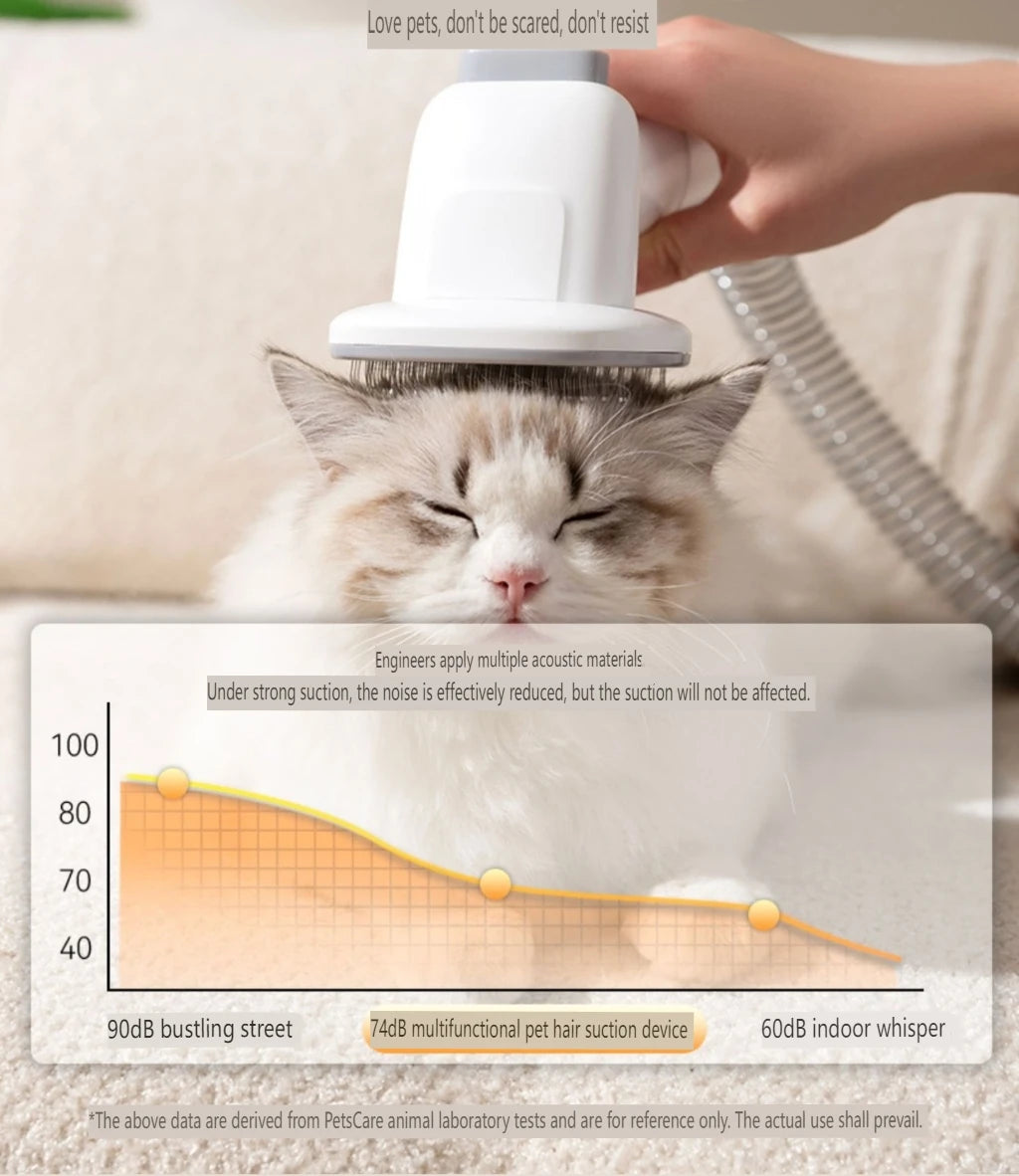 pet hair vacuum use a super high-quality motor, thus the sound is very low, which is less than 60dB in normal use, so this grooming vacuum will not scare your pet and also help the pet feel at ease and no longer afraid of haircuts.
