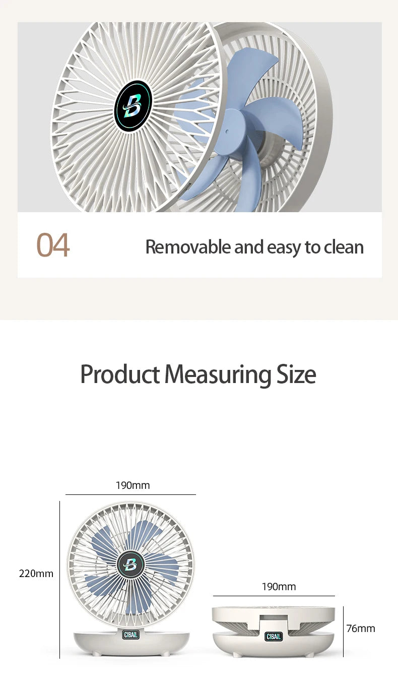 With its compact and rechargeable design, the Best Sellers 2IN1 Folding Desktop Fan is perfect for any space.