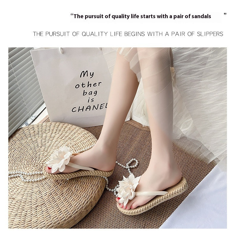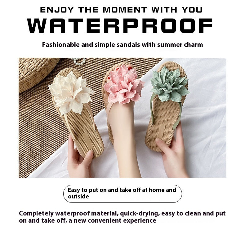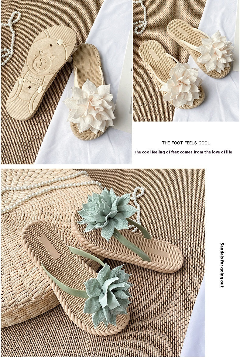 Gentle Woman Flowers All-matching Flat Shoes Non-slip Beach Sandals