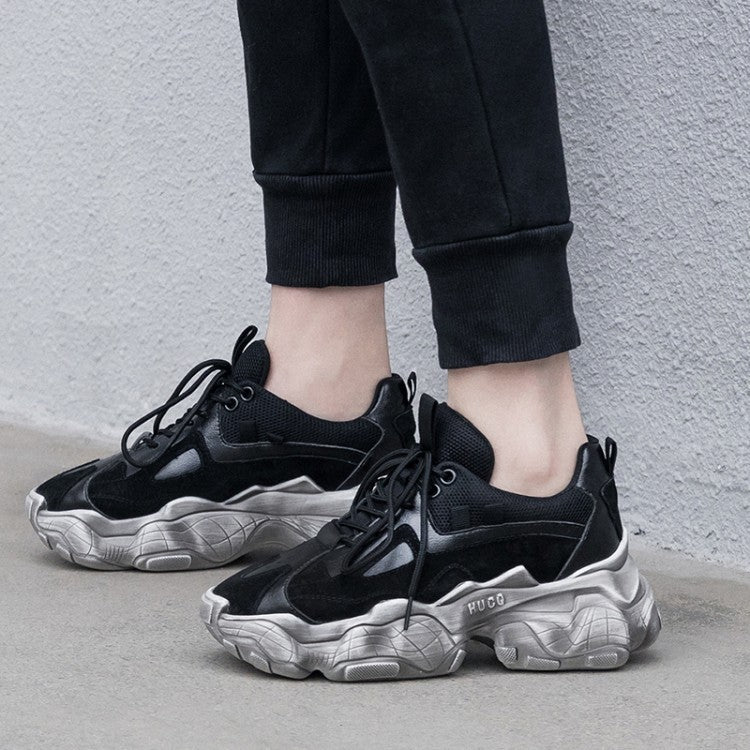 Elevate your activewear with these running platform sneakers, designed to combine performance and style effortlessly. The elevated sole offers enhanced cushioning and support, reducing impact during runs while adding a modern edge to your look. Crafted for comfort and durability, these sneakers provide a confident stride whether you're on the track or in the city. Experience the perfect balance of fashion-forward design and functional athletic wear.