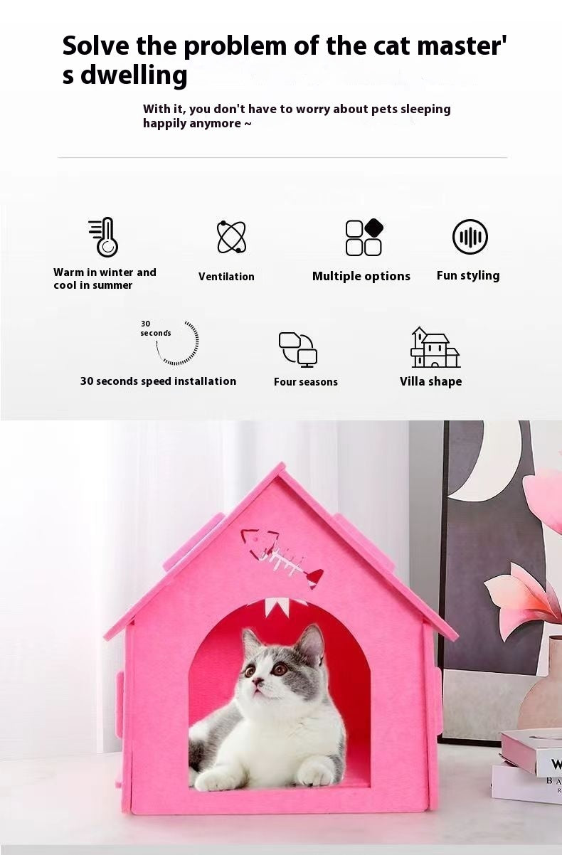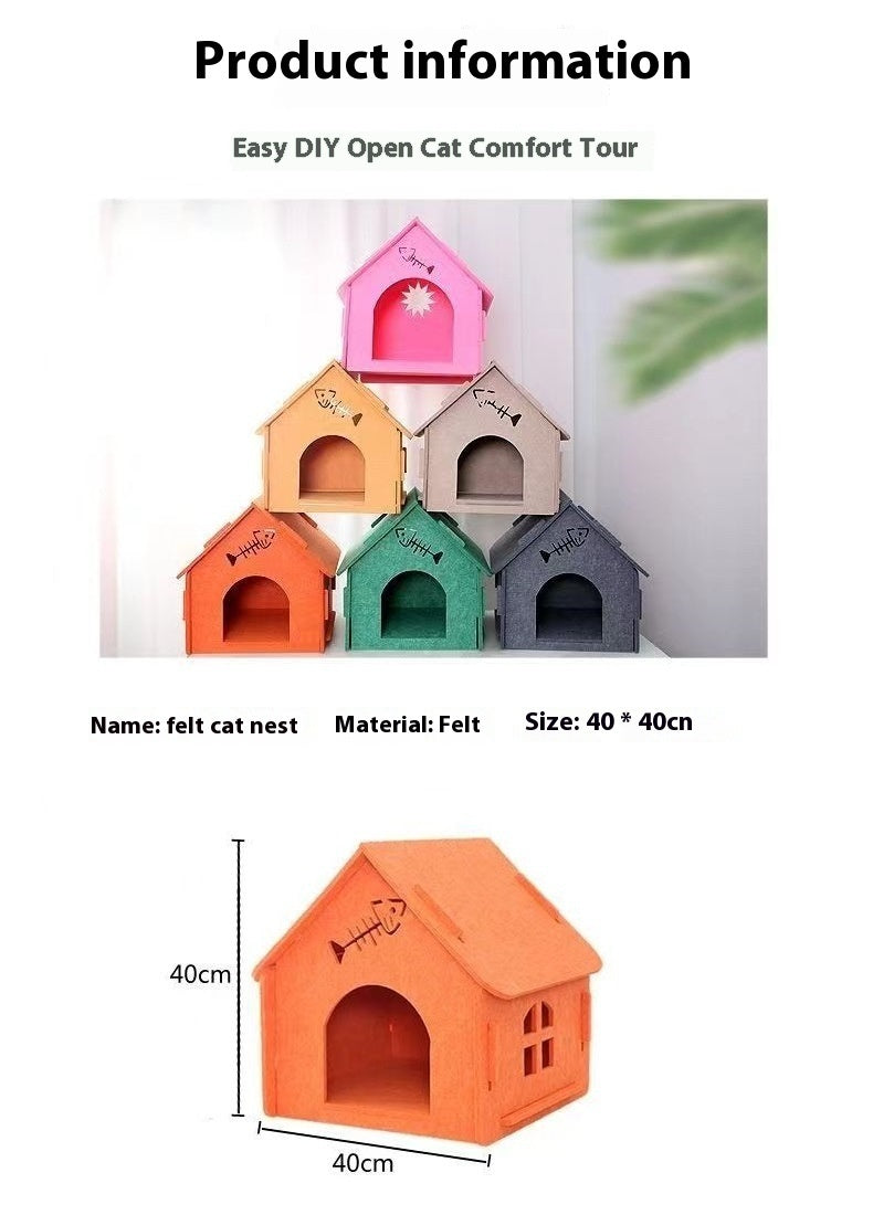 Felt Cat Bed Four Seasons Universal Removable And Washable Small House Semi-closed Warm Pet Bed
