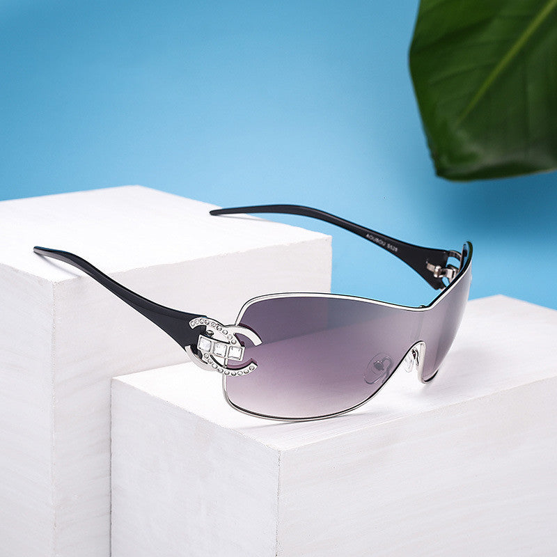 Diamond Fashion Metal Sunglasses Ladies Sun Shade Siamese Frame