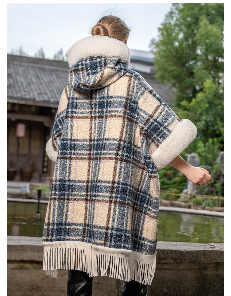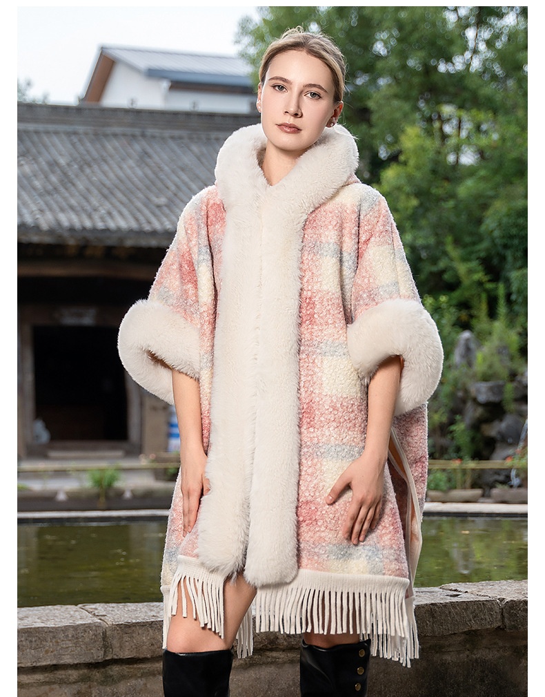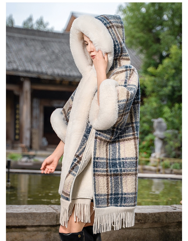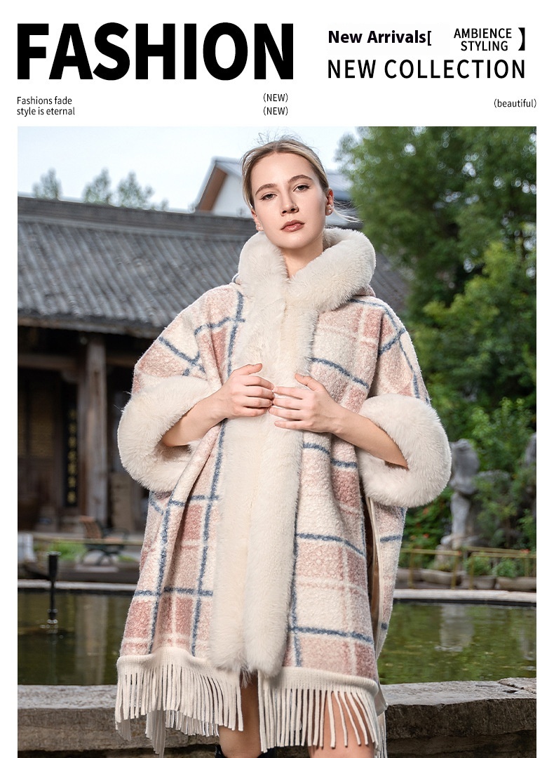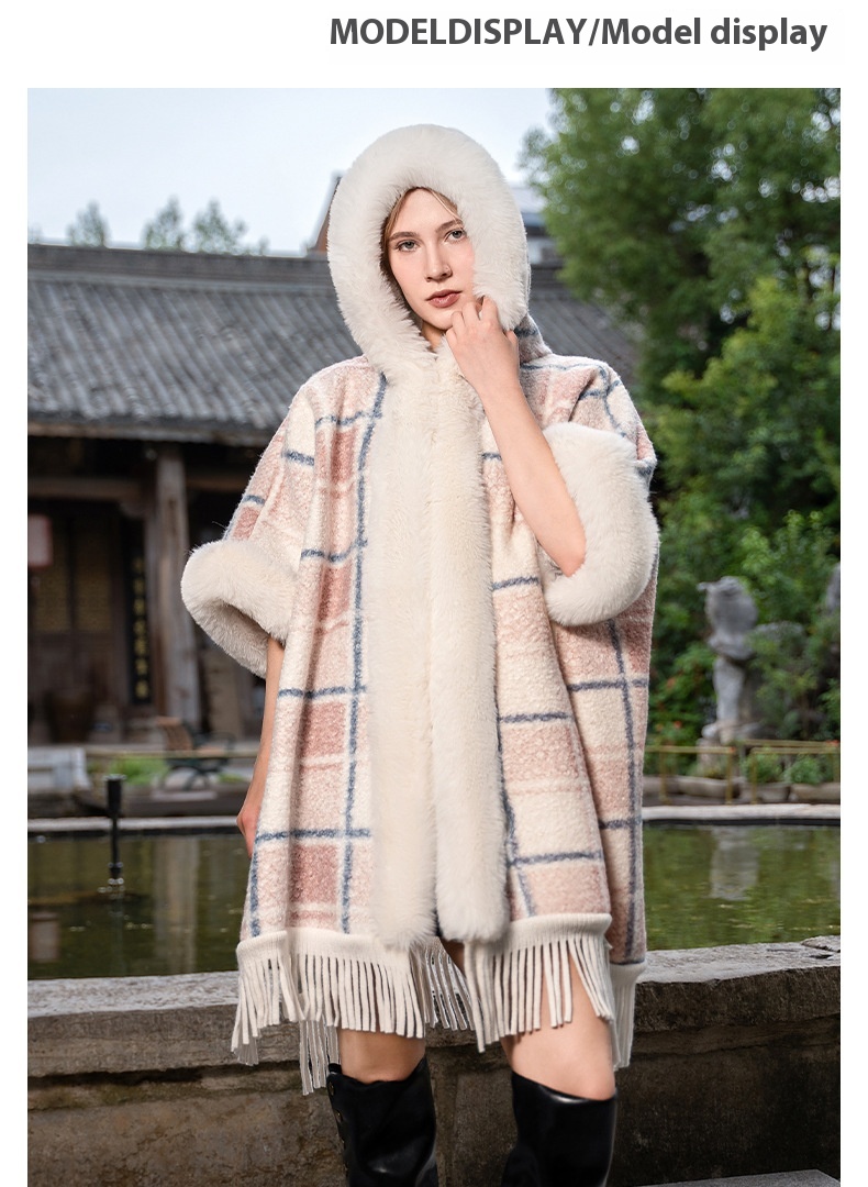 This New Hooded Warm Cloak features soft artificial plush fur, providing exceptional warmth and comfort during cold weather. Its hooded design offers added protection against wind and chill, making it an ideal shawl for outdoor use. Crafted to combine style with practicality, this cloak is perfect for layering to elevate your winter wardrobe while maintaining coziness.