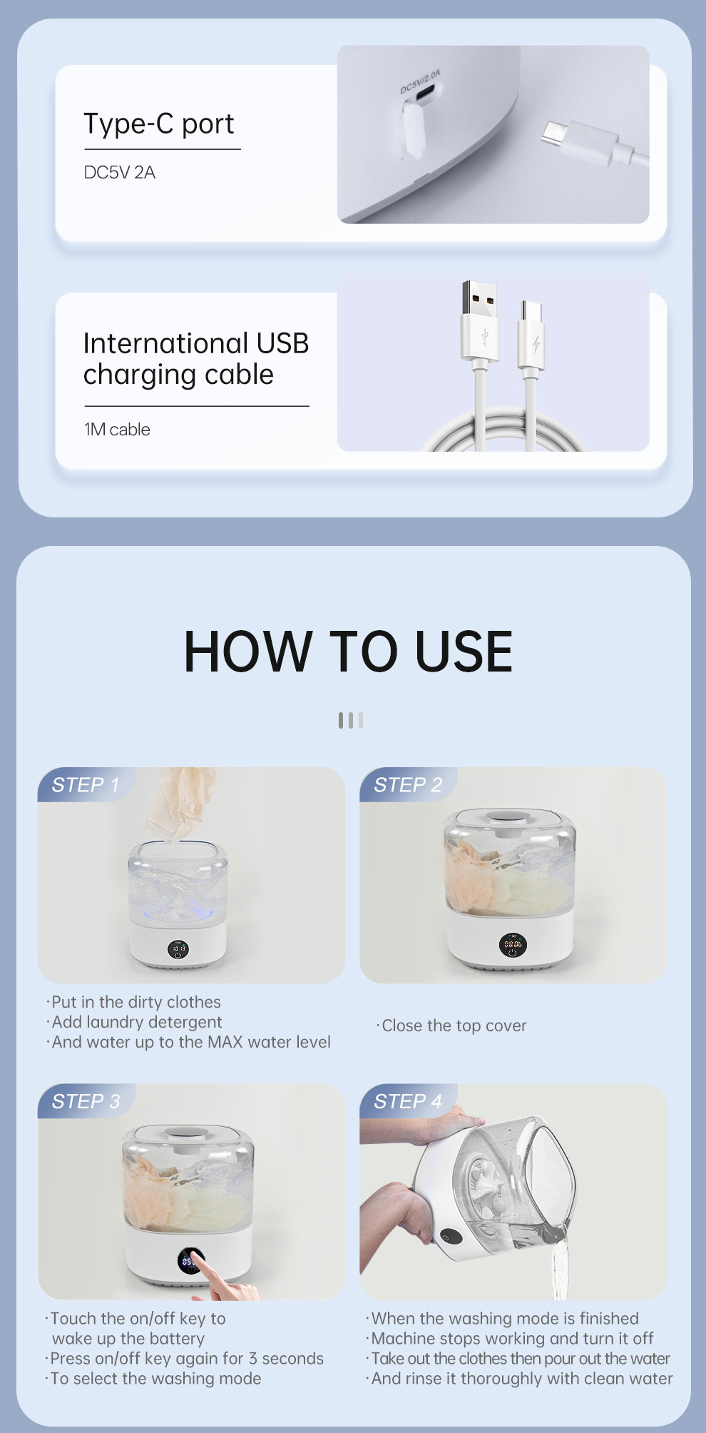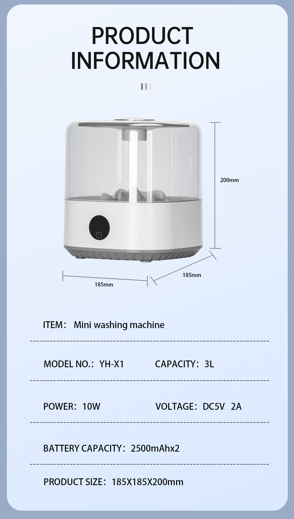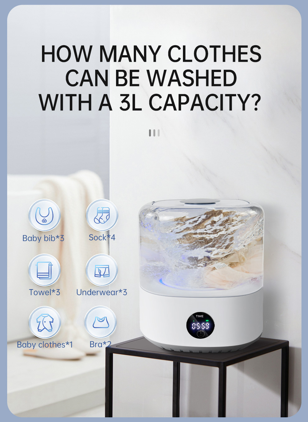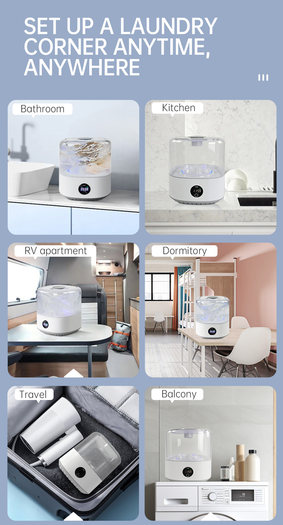 Perfect for travelers, students, and anyone with limited space, this mini cordless washer delivers efficient cleaning in a compact footprint. The 3L capacity handles delicates, socks, underwear, and small garments with ease. USB rechargeable design eliminates cord hassles, while three wash modes let you customize cycles for different fabric types. Whisper-quiet operation won't disturb roommates or neighbors. Ideal for dorms, apartments, RVs, and on-the-go lifestyles where full-size washers aren't practical.