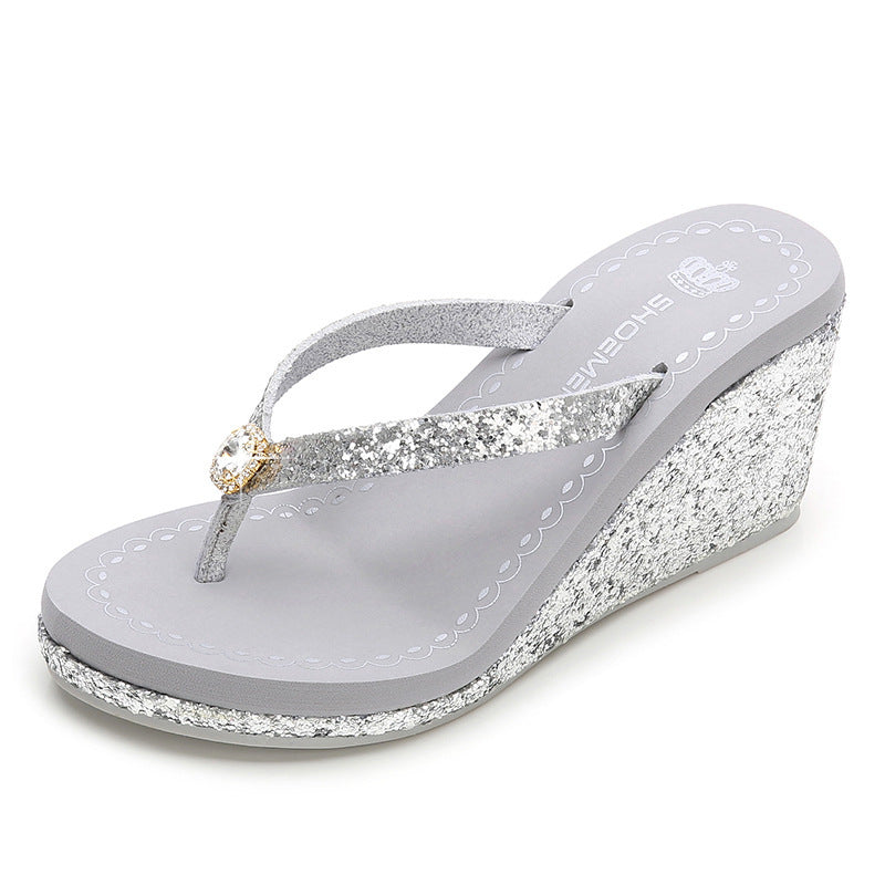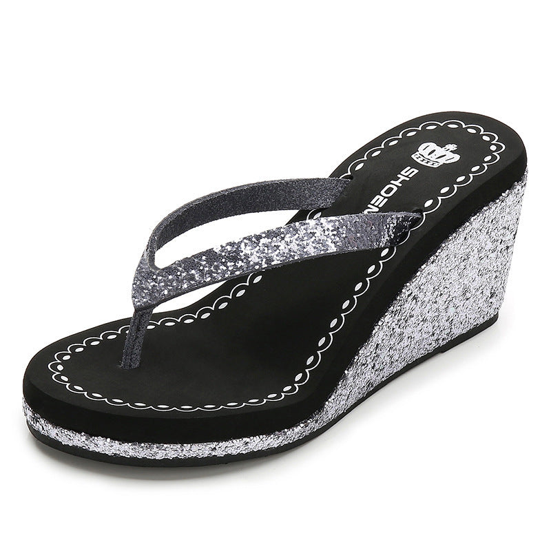 Color: The Summer Sequins Rhinestone Women's High Heel Slippers come in a variety of stunning colors, including W06-4 pure black, W06-4 sterling silver, W06-4 pure lotus root oblique color, W06-4 black with Diamond, W06-4 silver accessories Diamond, and pink W06-4 with Diamond.