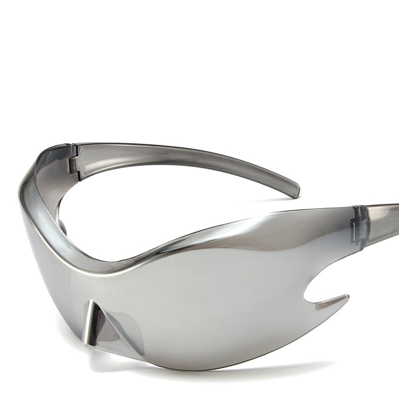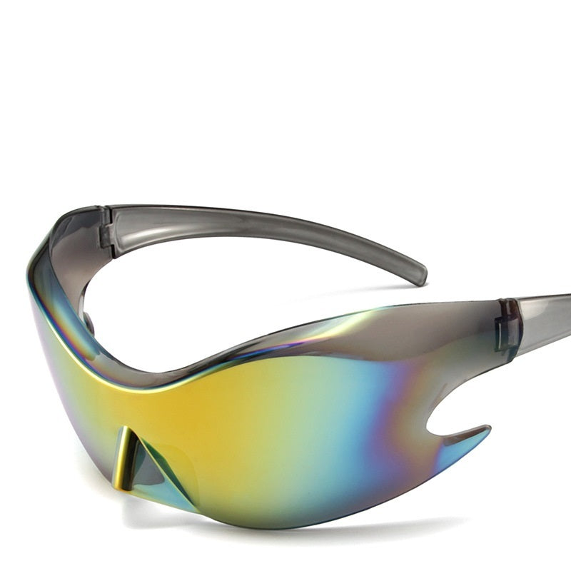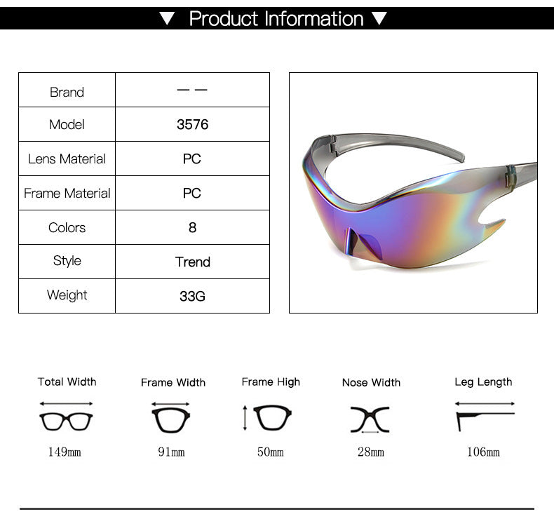 Product information: Applicable scenarios: Travel and cycling Color: gray, transparent orange color, transparent pink, blue Mercury, green Mercury, white Mercury, red mercury, local gold Style: personality, niche, future style, INS style Packing list:Glasses 1 Product Image: