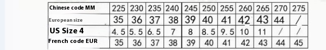 Size: 36, 37, 38, 39, 40, 41, 42, 43