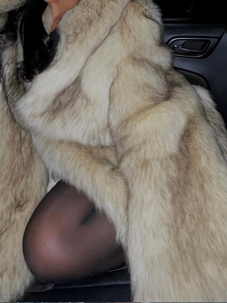 Ladies' Furry Lapel Jacket - Long Sleeve Casual Warm Coat