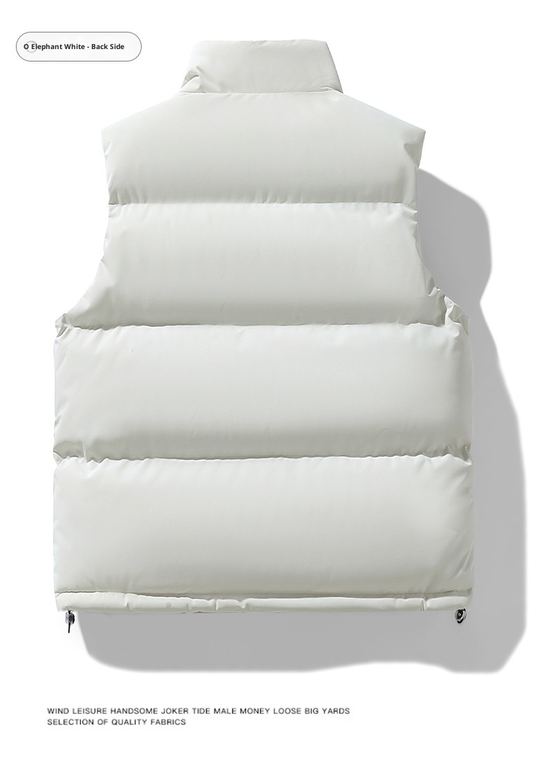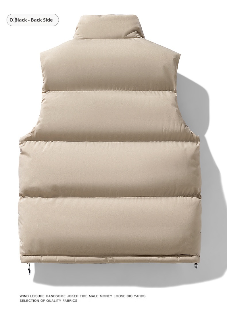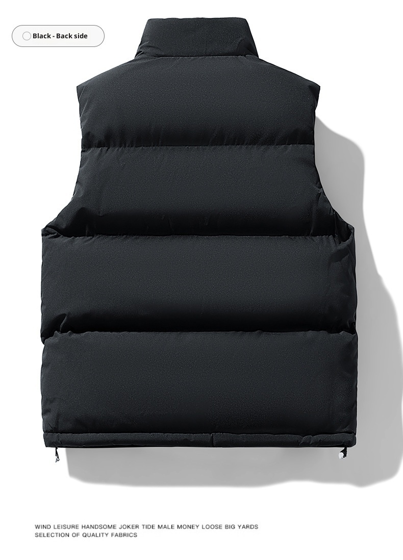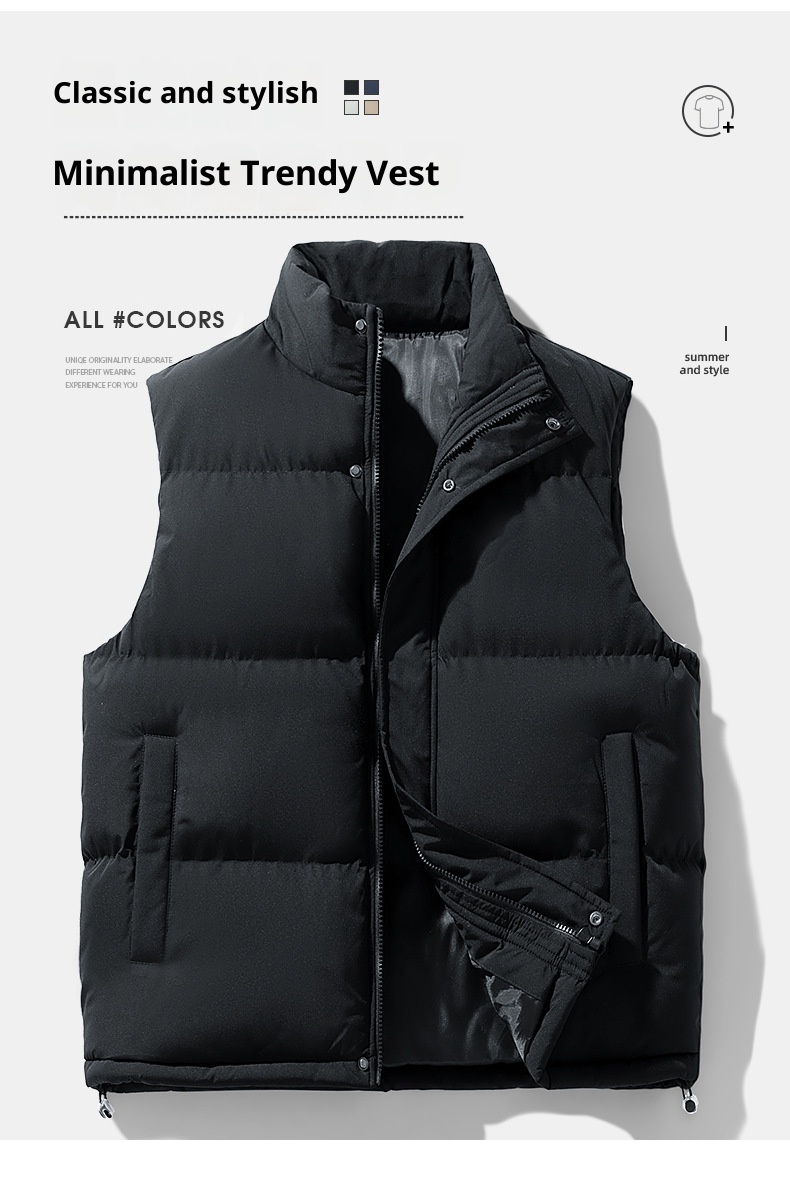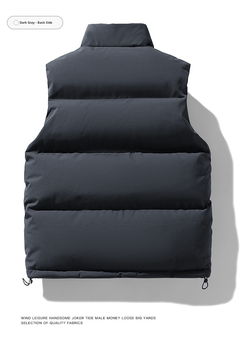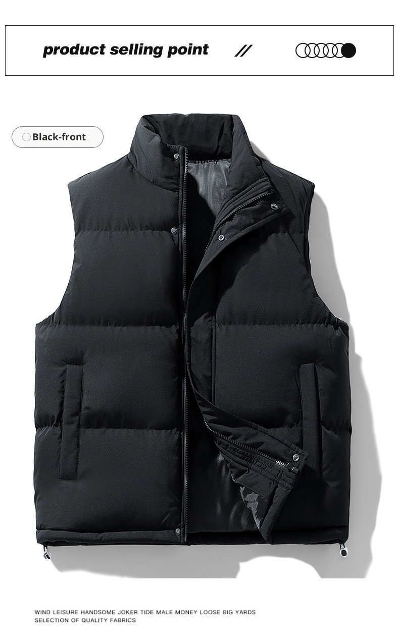 This men's plus-size waistcoat combines practical warmth with refined tailoring. The sleeveless design layers effortlessly over shirts or sweaters, while premium down cotton filling provides exceptional insulation without bulk. The structured stand collar adds a polished touch suitable for both casual and semi-formal occasions. Engineered for larger frames, this vest delivers comfort and mobility with its thoughtfully proportioned fit. Ideal for transitional seasons or layering in colder climates, it's a versatile essential that bridges style and functionality.