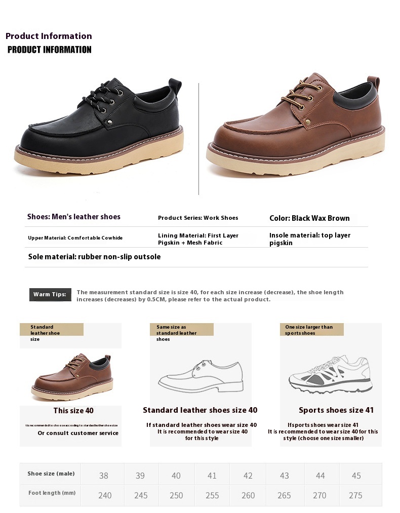 Designed for durability and comfort, these American Work Shoes low-top Martin boots feature genuine leather construction and a spacious toe box for enhanced foot movement. Ideal for demanding work environments, they combine robust materials with practical design to support all-day wear and reliable protection.