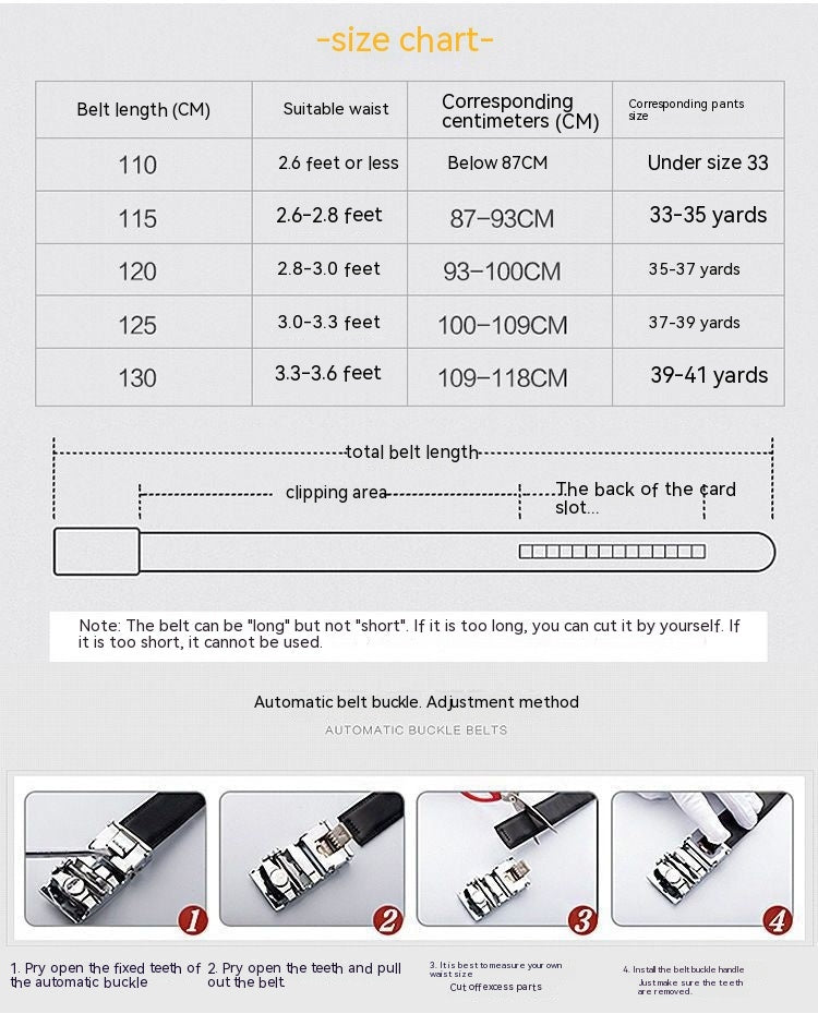 Expertly crafted from high-quality two-layer cowhide, this men's business belt is sure to elevate any outfit. With its sleek automatic buckle and durable construction, it offers both style and function. Perfect for any professional setting, this belt is a must-have for any man looking to make a lasting impression.