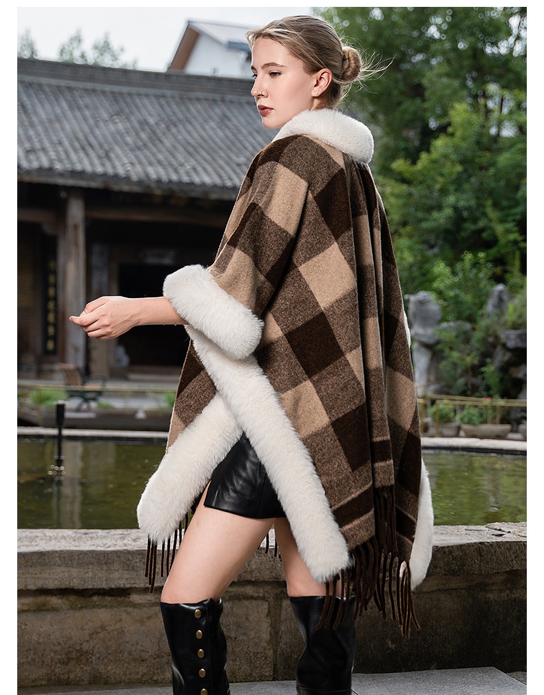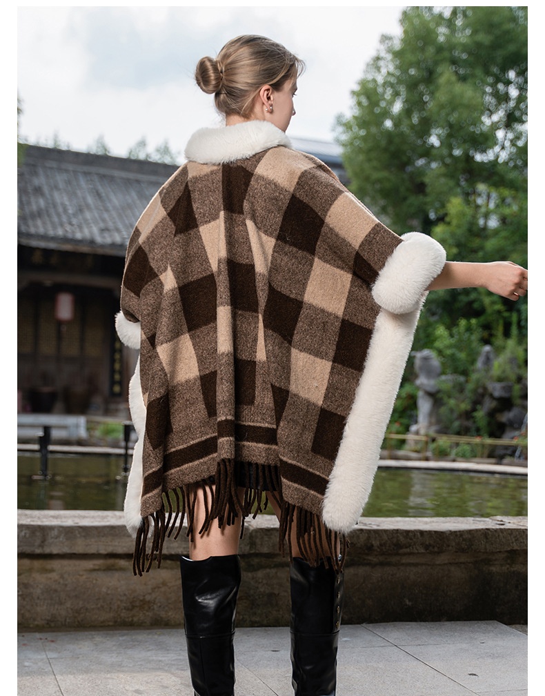 This plus-size cloak offers exceptional warmth with its thickened fleece lining and plush fur trim, making it ideal for colder days. Designed with a loose, versatile fit and a spacious hood, it provides both comfort and coverage. Its shawl-style silhouette easily adapts to various outfits, combining practicality with elegant layering for an expert-approved winter essential.