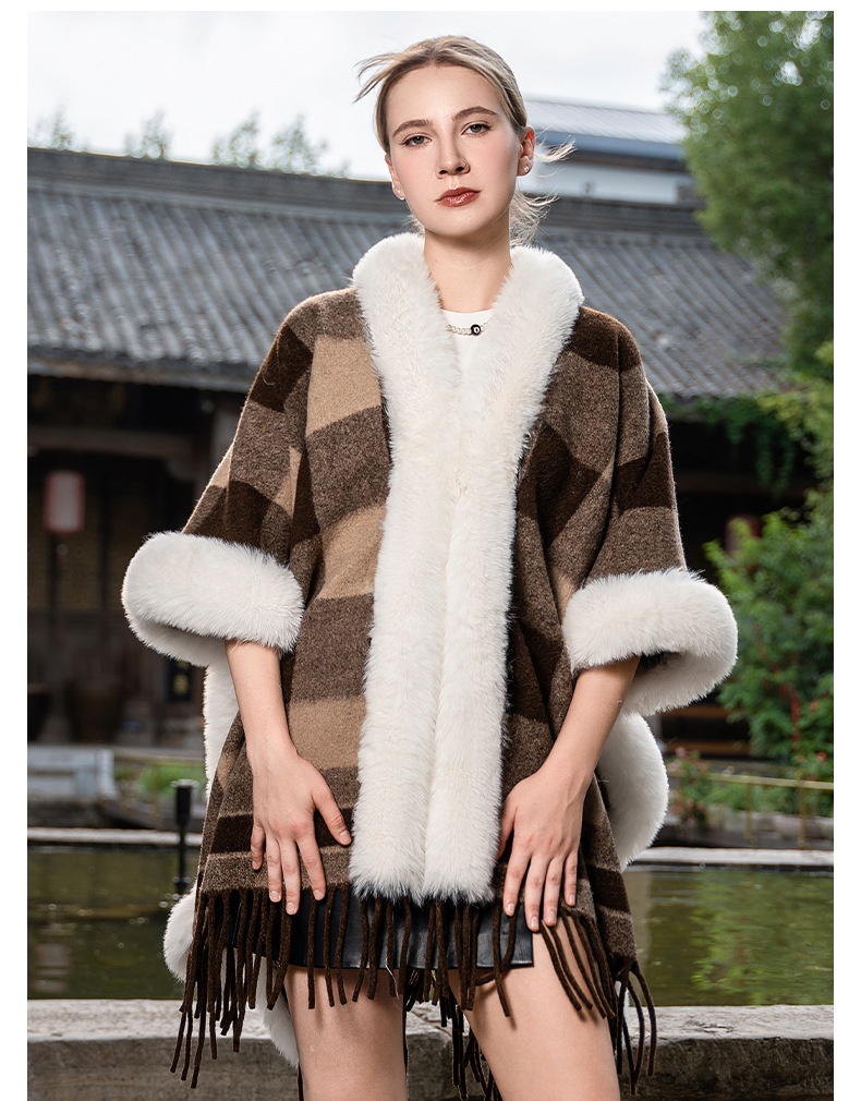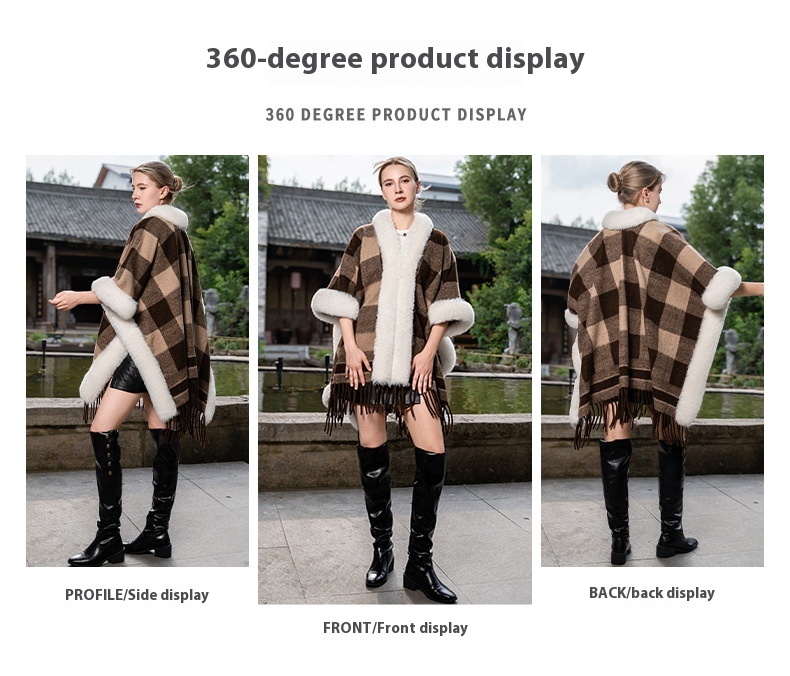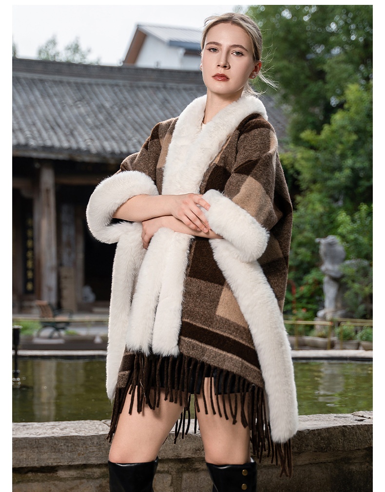 New Plus Size Cloak Hooded Fleece-lined Thickened Fur Shawl Loose Versatile Coat