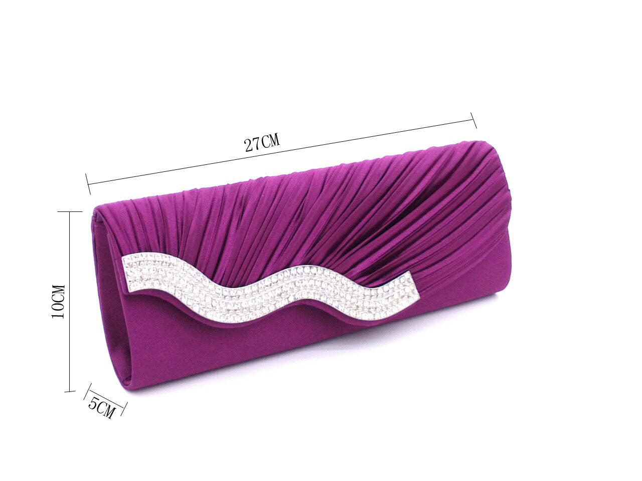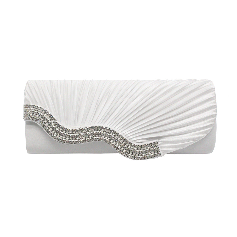Elevate your evening ensemble with this rhinestone pleated clutch, expertly designed to combine elegance and sparkle. Its finely pleated surface adds texture and depth, while the glistening rhinestones provide a refined shimmer. Compact yet spacious enough for essentials, this clutch offers a sophisticated touch to complement any formal occasion.