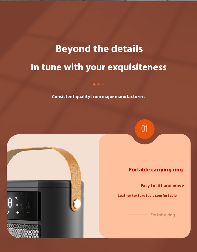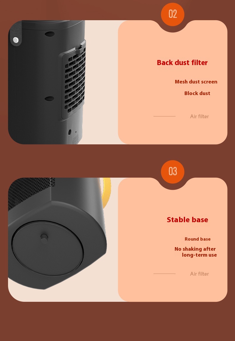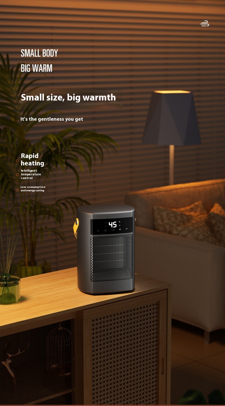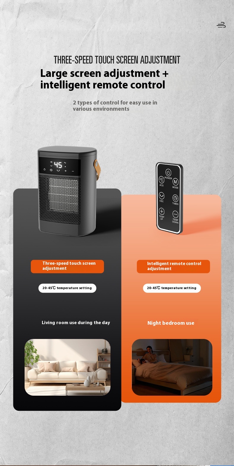 This compact Warm Air Blower is designed for efficient household heating, featuring a shaking head mechanism that distributes warm air evenly throughout the room. Controlled remotely, it offers convenient temperature adjustments without interrupting your comfort. Its small size makes it easy to place in any space, providing targeted warmth while maintaining energy efficiency. Ideal for personal or small room use, this heater ensures reliable and consistent heating performance during colder months.