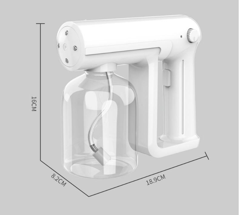 Effortlessly disinfect surfaces with our Wireless Alcohol Blue Light Disinfection Spray.