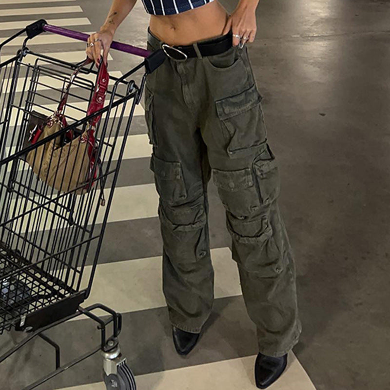 Upgrade your casual look with our Women's Casual Straight Jeans. These jeans offer both style and functionality with a classic straight fit and multiple pockets. Made for everyday wear, they are the perfect addition to any wardrobe. Experience comfort and versatility with our multi-pocket personality jeans.Product information:Fabric name: DenimMain fabric composition: CottonStyle: Multi-pocket pantsLength: trousersWaist type: low-waistThickness: MediumColor: army green, skin toneNote:Asian sizes are 1 to 2 sizes smaller than European and American people. Choose the larger size if your size is between two sizes. Please allow 2-3cm differences due to manual measurement. As different computers display colors differently, the color of the actual item may vary slightly from the images shown.Size Information:S,M,L(Unit: CM)