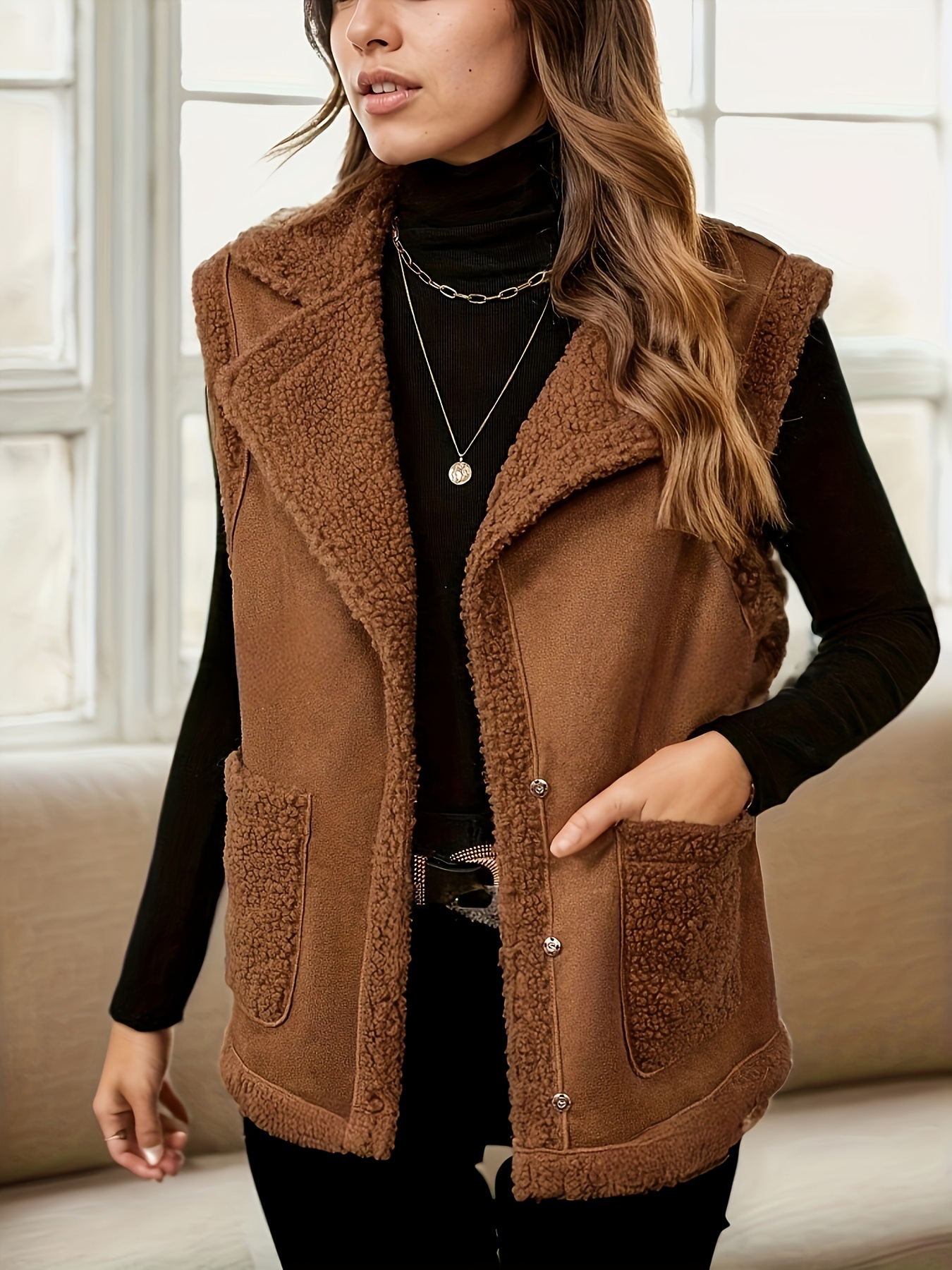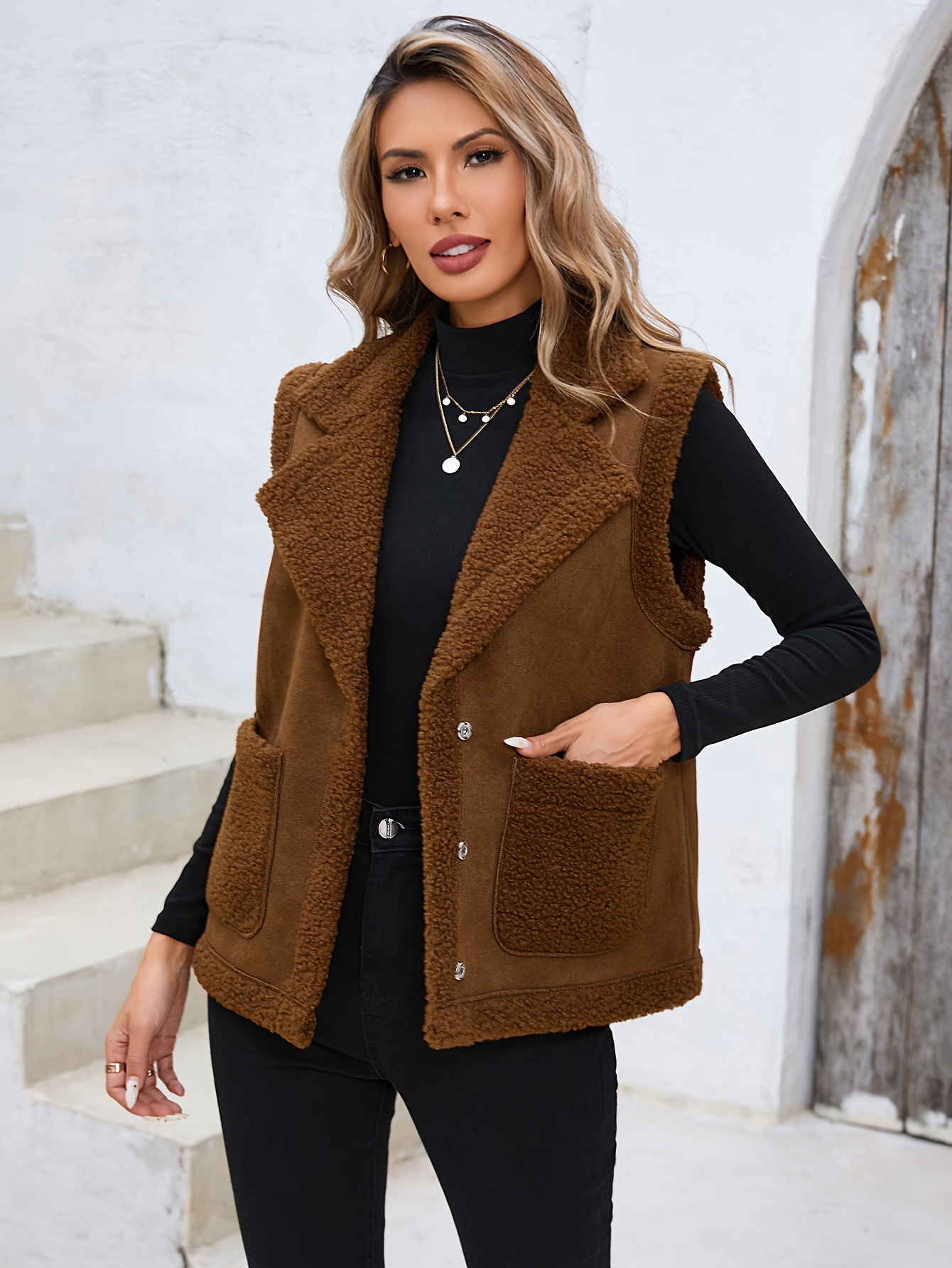 Women's Corduroy Collar Stitching Suede Vest Jacket With Side Pockets