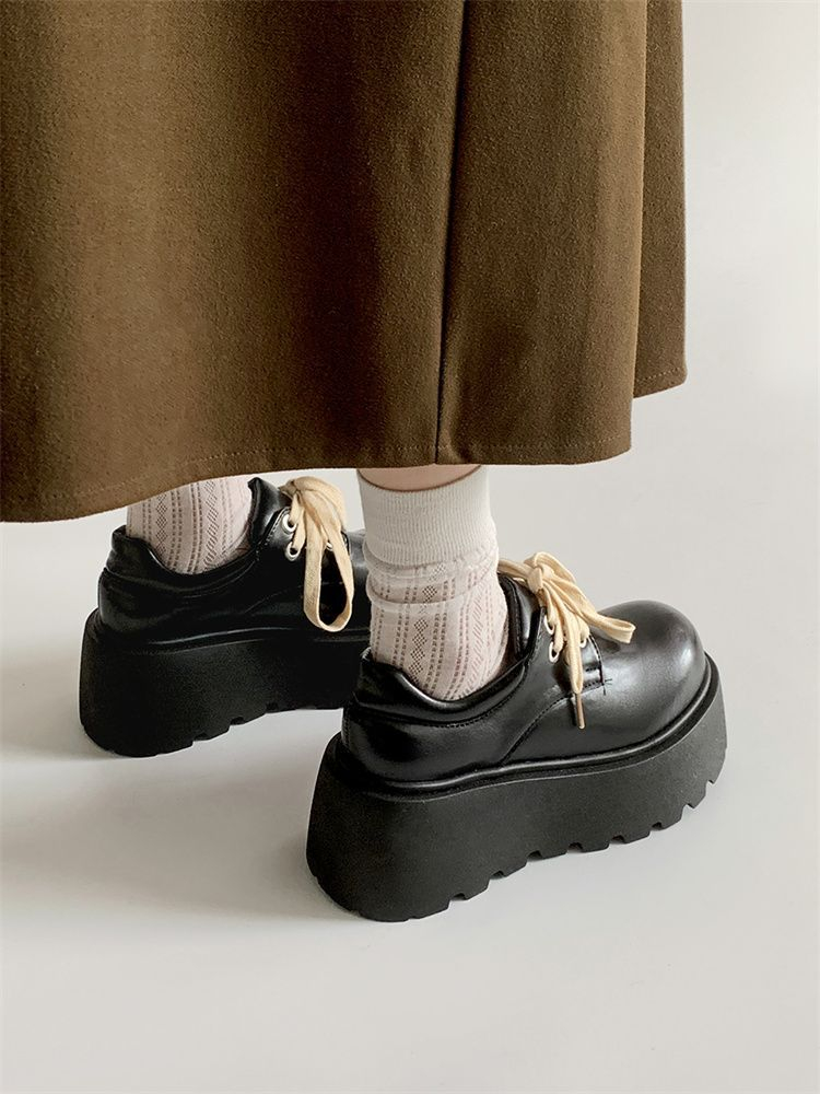 Retro British Matte Black Thick Sole Increased By Lace-up Leather Shoes