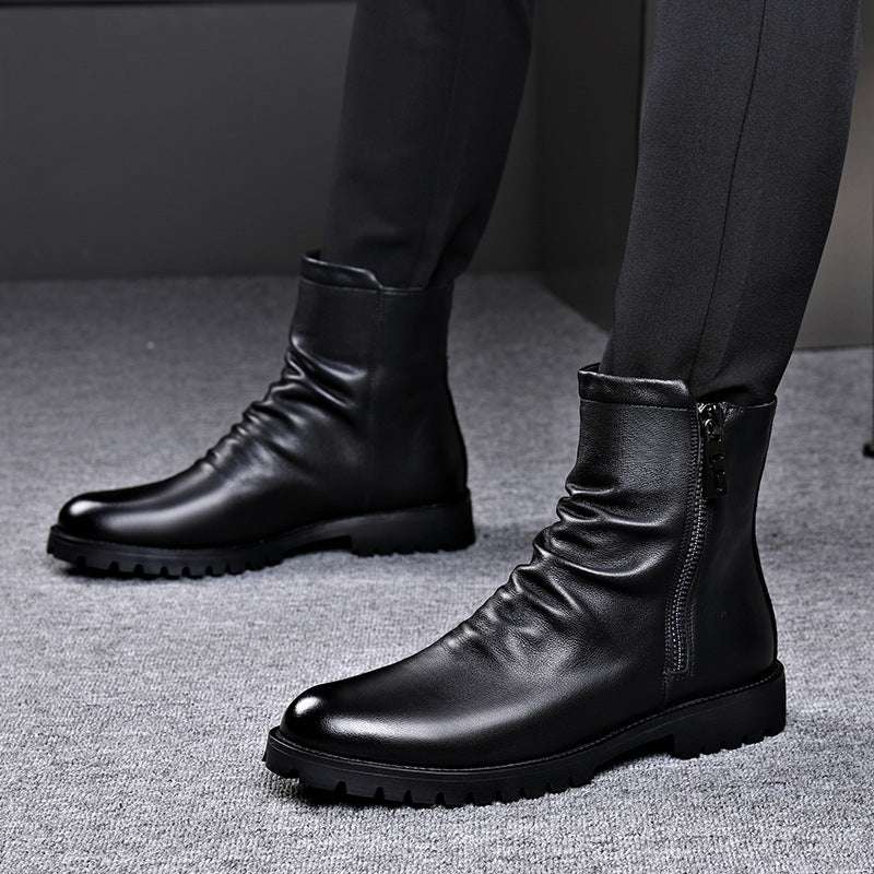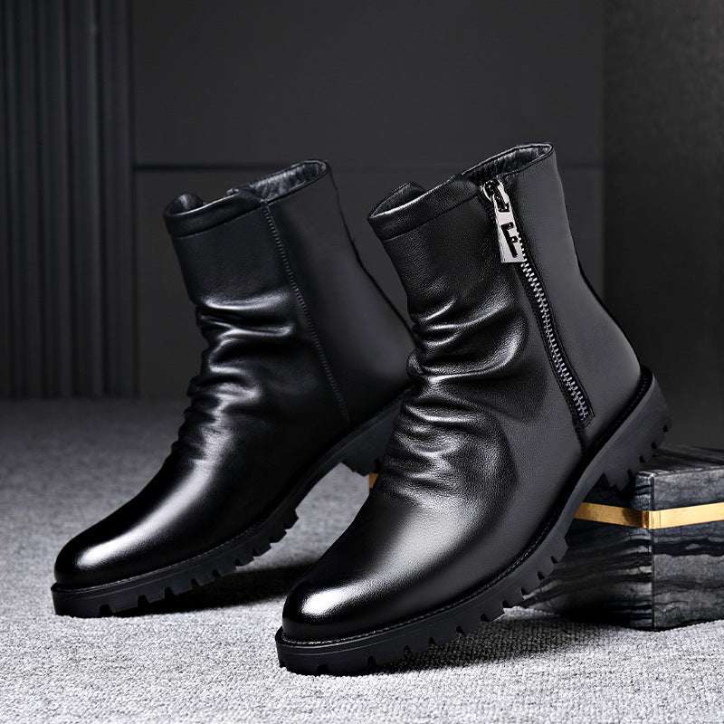 Autumn And Winter British Style Men's Leather Boots High-top Zipper Martin Boots