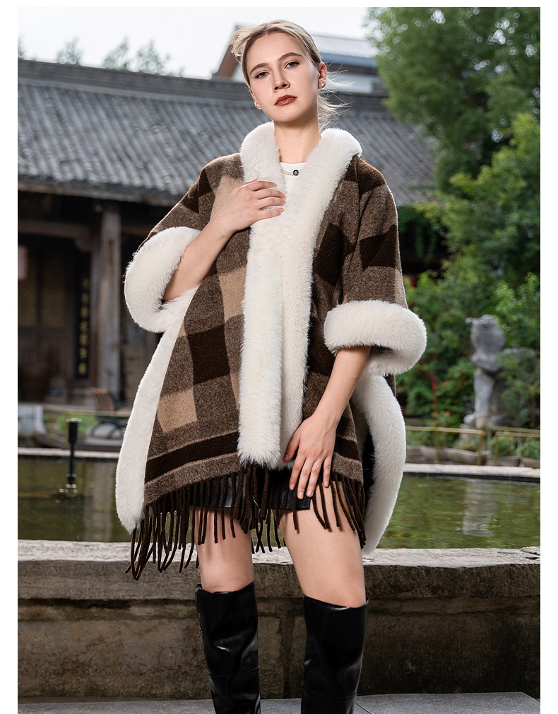 This plus-size cloak offers exceptional warmth with its thickened fleece lining and plush fur trim, making it ideal for colder days. Designed with a loose, versatile fit and a spacious hood, it provides both comfort and coverage. Its shawl-style silhouette easily adapts to various outfits, combining practicality with elegant layering for an expert-approved winter essential.