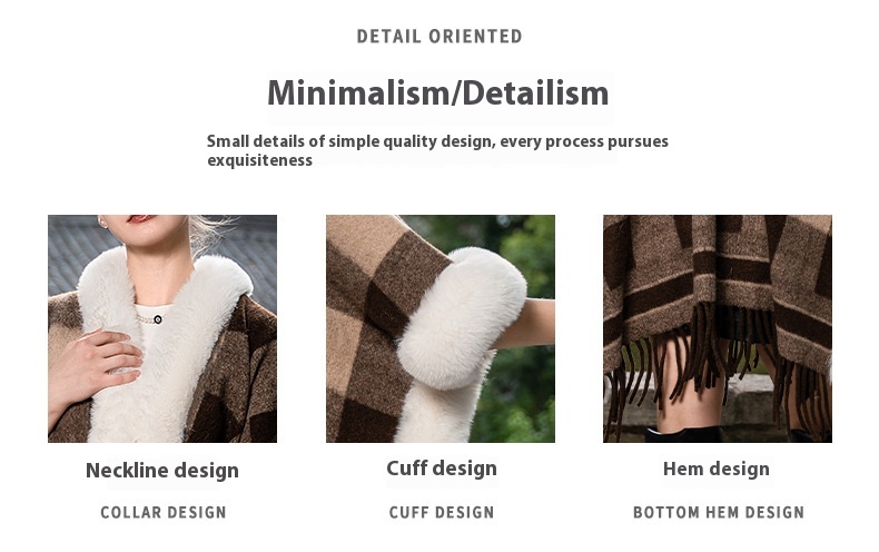 New Plus Size Cloak Hooded Fleece-lined Thickened Fur Shawl Loose Versatile Coat