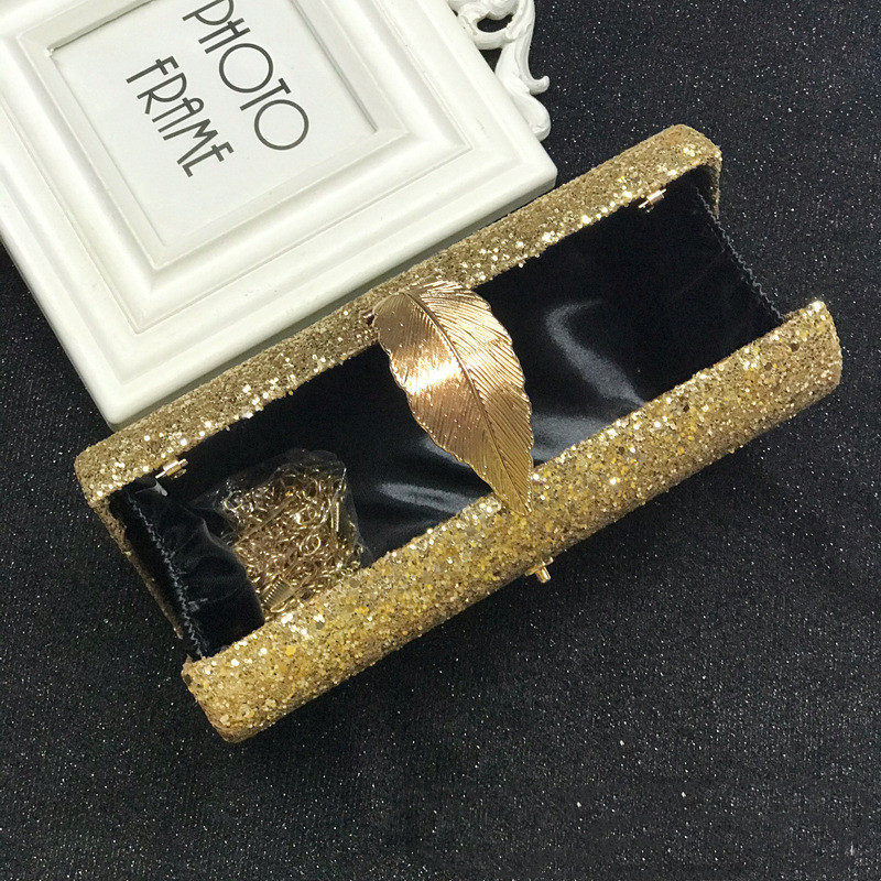 Evening Bag Ladies Clutch Super Shiny Hardware Leaf Lock