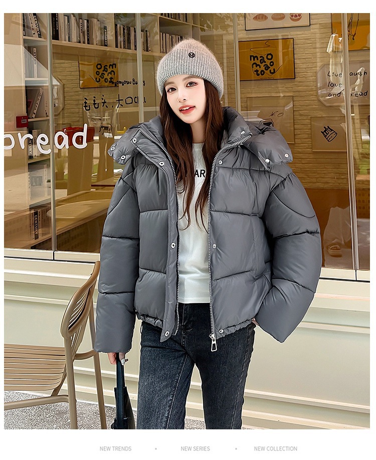 Elegant Fluffy Hooded Cotton Jacket Puffer Jacket Coat Warm Commute