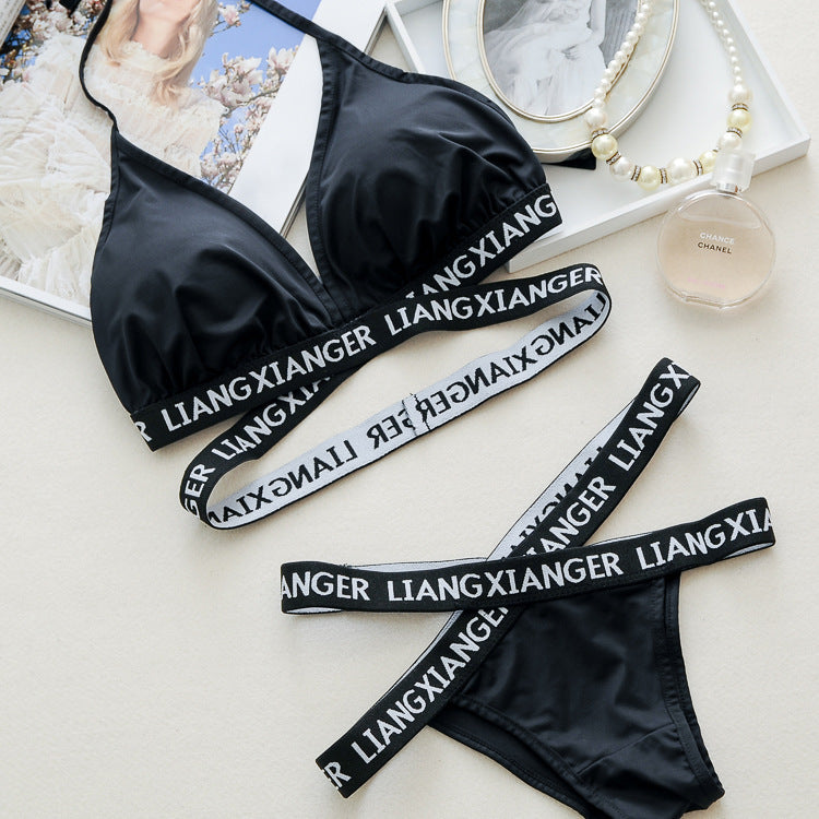 Swimsuit Women Black Split Sexy Size Chest Gathered Three-point Bikini