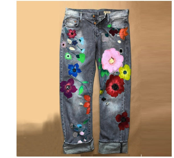 Ripped Fashion Non-stretch Women's Straight-leg Denim Trousers