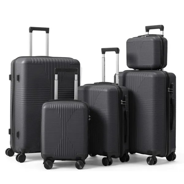 Durable polypropylene trolley case system featuring a non-TSA customs lock mechanism and five interchangeable sizes—12", 16", 20", 24", and 28"—to accommodate everything from carry-on essentials to extended travel. The dark gray finish resists visible wear while the lightweight PP construction minimizes luggage weight. Ideal for frequent travelers who prioritize security and flexibility across multiple trip lengths without TSA PreCheck compatibility constraints.