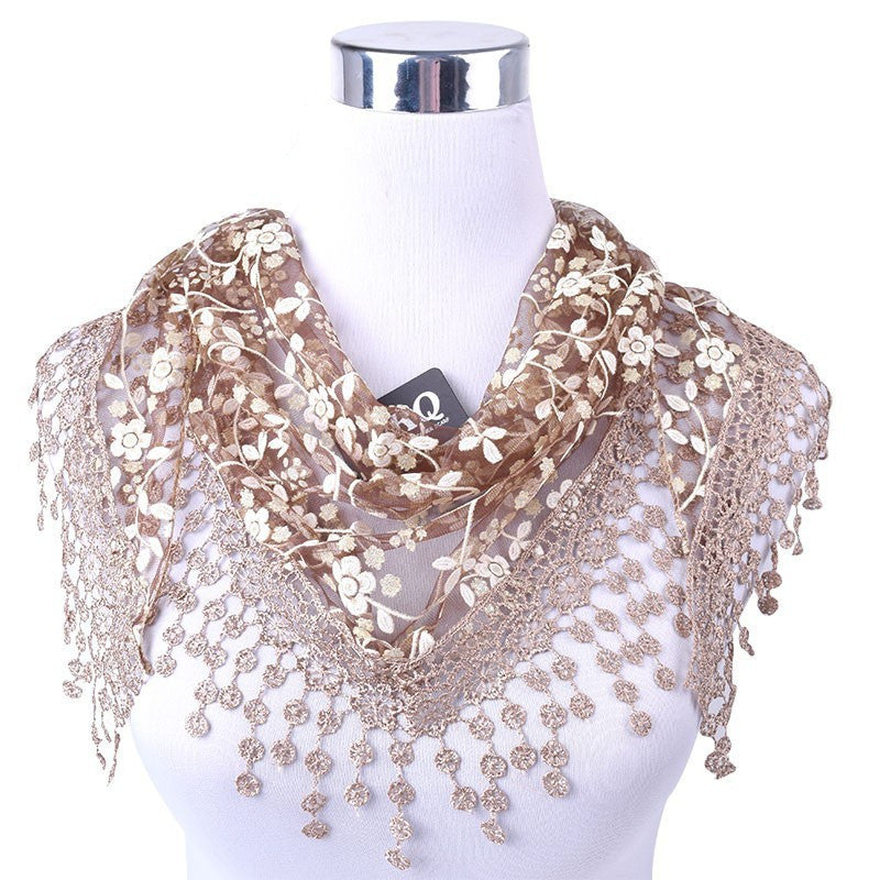 Embrace a free-spirited look with our Ethnic Style Small Floral Velvet Triangle Shawl Scarf. Featuring an airy gauze-like feel and beautiful jacquard floral detailing, this lightweight scarf blends bohemian charm with a soft, feminine touch. Its unique triangle shape and lace accents make it the perfect accessory for layering and styling in endless ways.
