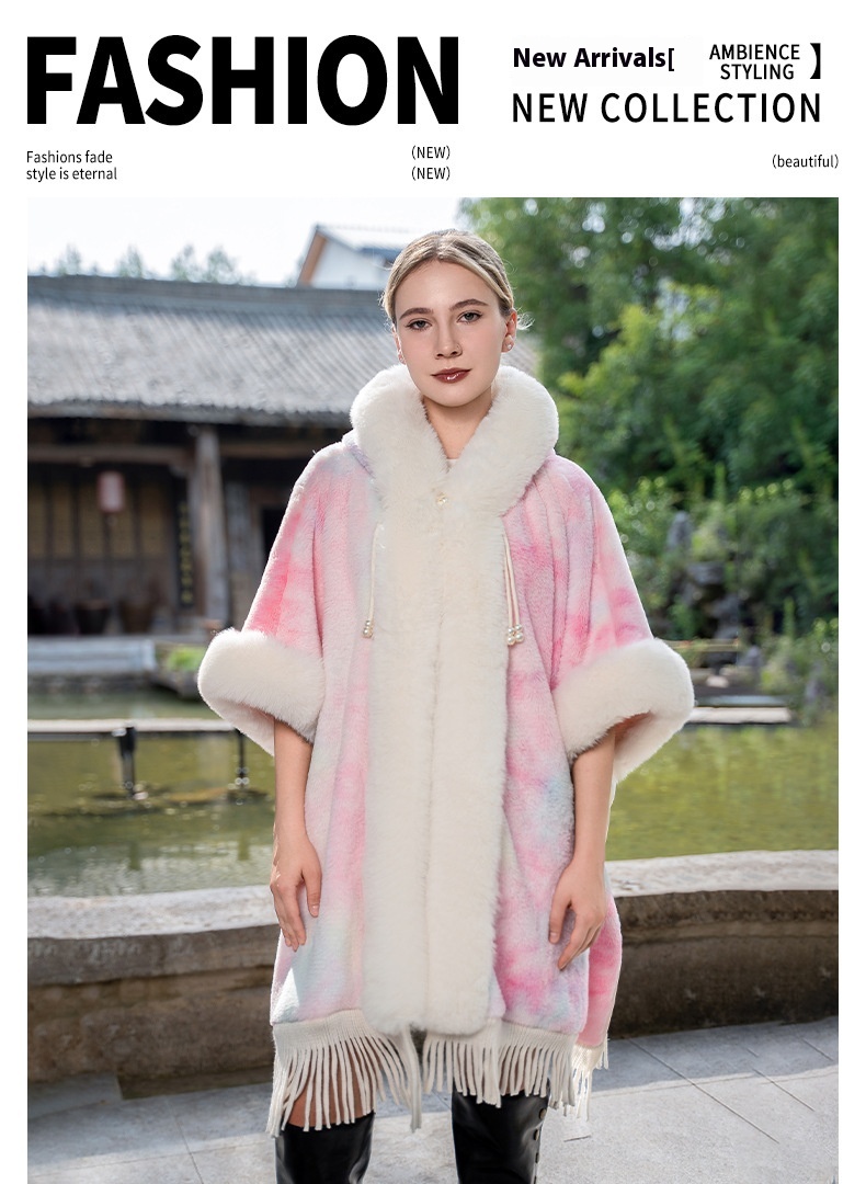 Tie-dyed Tassel Cape And Shawl Fashion National Style Warm All-matching Coat