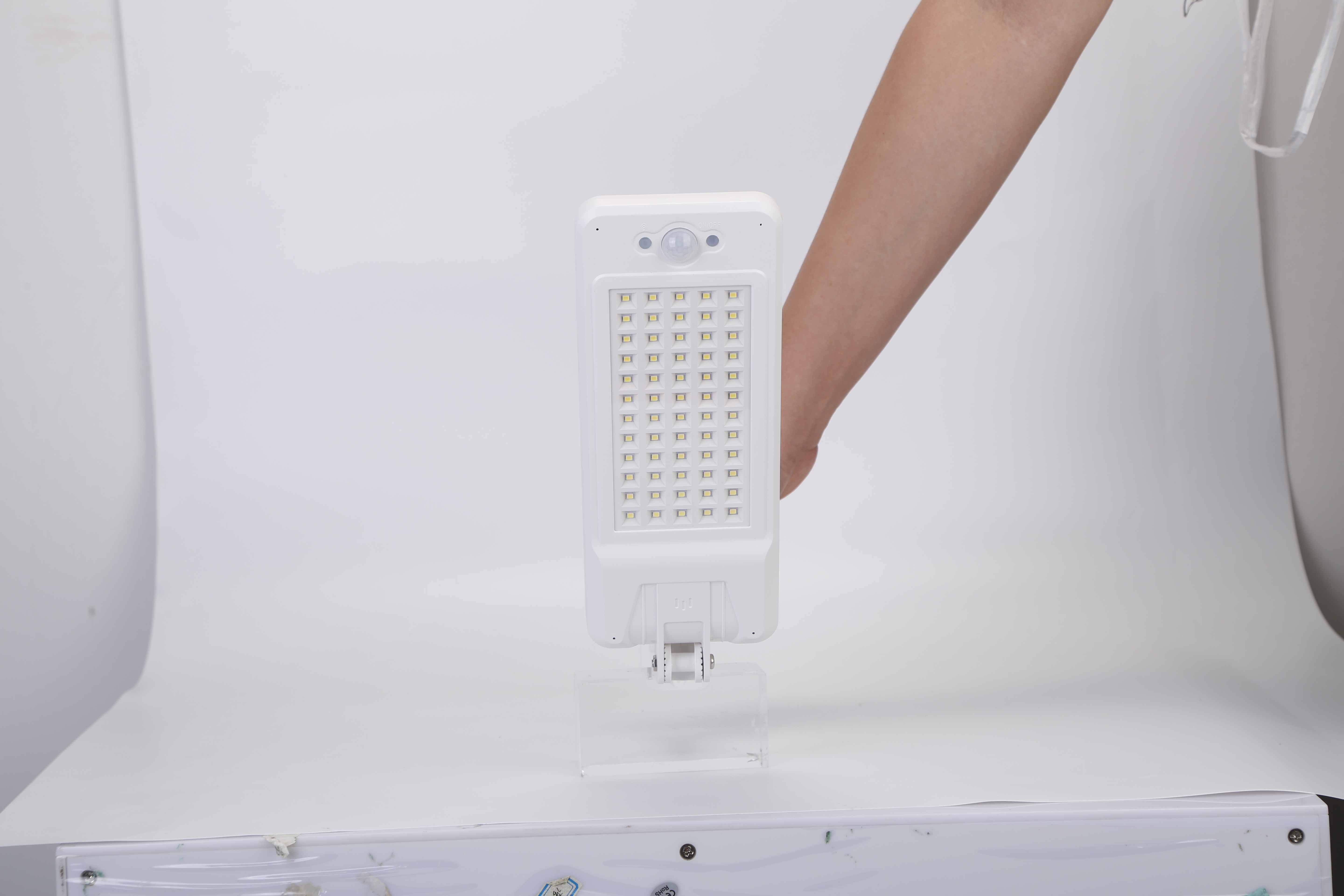 - **60Pcs LEDs Ultra-Bright Solar Powered Lights*: Inbuilt bright 60LEDs with brightness adjustment(adjust through remote control);sensitive motion sensor with 120° wide sensing angle and 180° illumination angle;can provide excellent illumination and turn the dark space into a bright lighted space for security and safety protection .